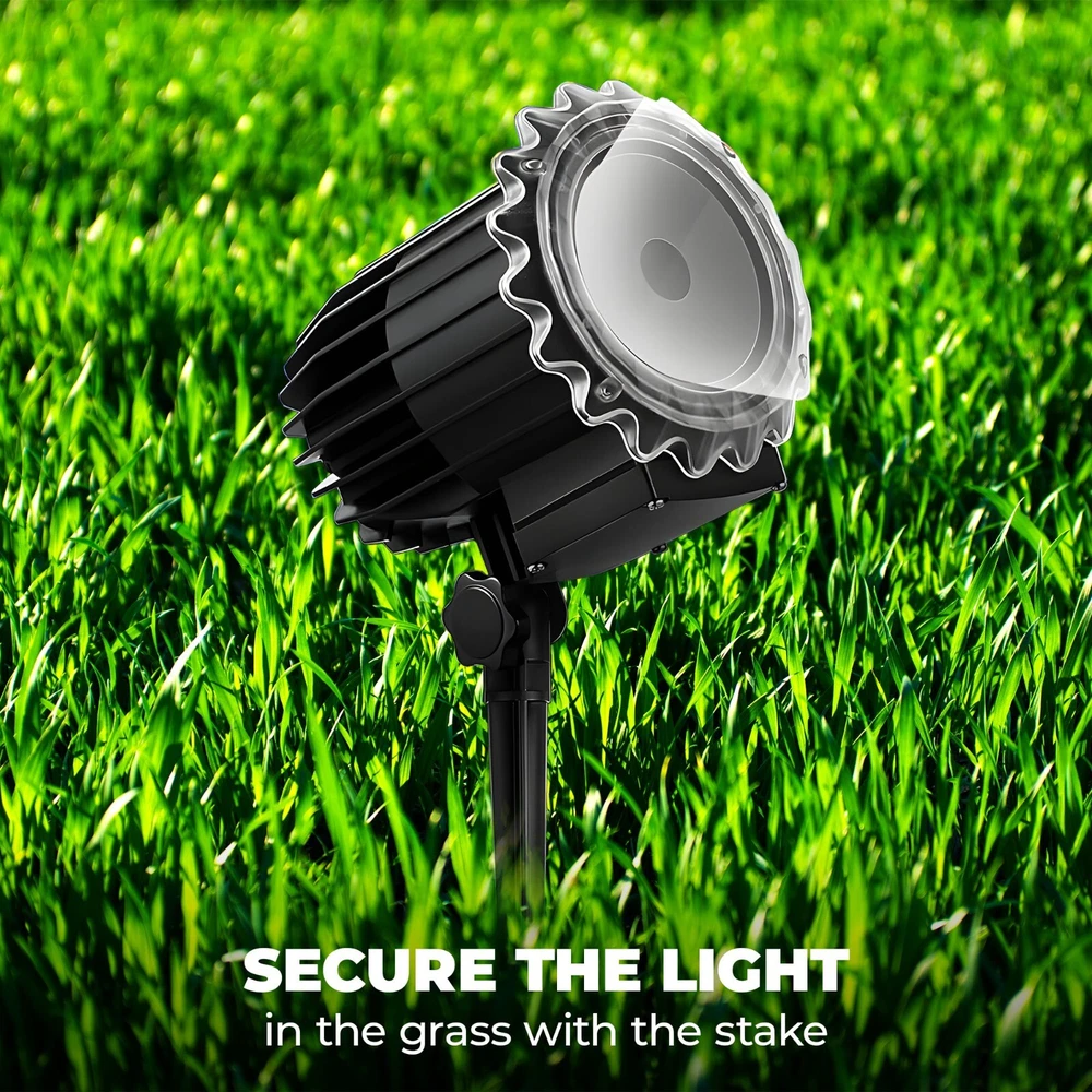 Crystal-Clear Brilliance: Our laser light boasts a remarkable range of 10 to 27 feet, allowing you to customize the projection distance for an optimal viewing experience, no matter the space. All-Weather Versatility: Rain or shine, this laser light is built to last. Its weatherproof design makes it ideal for both indoor and outdoor use. Effortless Setup: Ditch the complicated instructions! This laser light projector boasts plug-and-play simplicity. Place it on a table, flat surface, or soft grass for a dramatic ground-level effect. 5 Function Remote Control: The Remote Keys Include On/Off, Quick Flashing, Slow Flashing, 2-Hour Timer, 4-Hour Timer, and 6-Hour Timer. Package Include: 1 Laser Light Projector; 1 Remote Control; 1 Power Supply Transformer; 1 Ground Stake (outdoor use); 1 Table-Top Mounting Plate (indoor use); 1 Instruction Manual