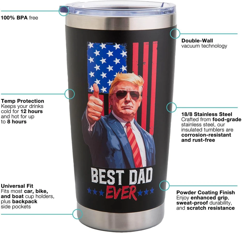 Store New Arrivals Add to Favorite View Feedback Contact Trump Fathers Day Gift from Daughter Son, Cool Gifts for Dad Drinking Cup, Good Dad Birthday Gift Ideas, Best Dad Ever Gifts, Dad Christmas Gifts, Presents for Dad, Coffee Tumbler Travel Mug for Men Description Item model number wintbl Style Casual Number of Items 1 Pattern Letter Print Country of Origin China Theme Fathers Day Unit Count 1.0 Count Product Dimensions 3.6"W x 6.9"H Material Stainless Steel Capacity 20 Fluid Ounces Package Type Gift Box Age Range (Description) Adult Occasion Christmas, Father's Day, Birthday Item Weight 9.6 ounces Finish Type Glossy Specific Uses For Product Cold Drinks, Hot Drinks Included Components Lid Reusability Reusable Material Feature Insulated Material Type Free BPA Free Special Feature Leak Proof, Vacuum Insulated, Double Wall, Rust Resistant, Scratch Resistant Color Dad Shape Tumblers Recommended Uses For Product Travel, Home Manufacturer Winzsox Brand Winzsox Product Care Instructions Dishwasher Safe Size 20 oz ✅ Perfect Christmas Presents for Dad: This 20oz dad tumbler is the perfect gift for dad, whether for Christmas, Father’s Day, or milestone birthdays like 30th, 40th, 50th, 60th, 70th, 80th, and even 90th. Thoughtful and practical for any occasion. ✅ Versatile Gifts for Dad: Whether from daughter, son, or kids, this fathers day cup is ideal for dad, stepdad, bonus dad, or even your boyfriend’s dad. A versatile, timeless gift for all father figures and any celebration. ✅ Premium Quality for Everyday Use: Made from 18/8 food-grade stainless steel with a durable powder coating, this dad coffee tumbler is sweatproof and rust-resistant. Designed for everyday use, it ensures dad enjoys his favorite drinks in style. ✅ Superior Temperature Retention: Double-wall vacuum insulation keeps drinks cold for 12+ hours and hot for 8+ hours. Perfect for coffee, tea, soda, wine, or beer—this trump cup fits seamlessly into any dad’s daily routine. ✅ Upgraded BPA-Free Lid: The 100% BPA-free lid has a 2x stronger silicone sealing ring, ensuring a better leak-proof fit. Dad can enjoy his drinks without spills, making this dad tumbler for men a convenient and worry-free choice. Product Description The Perfect 20oz Gift Made with Heart Built to Last Crafted from 18/8 food-grade stainless steel, this fathers day tumbler is durable and ideal for everyday style. Enjoy Every Temperature Our trump tumbler has double wall insulation, keeping drinks hot for hours while staying cool to the touch. Sip with Confidence This dad travel mug features a leak-proof lid, ensuring no spills or mess, perfect for enjoying drinks with confidence on the go. Finish That Endures The best dad cup's powder coating provides a vibrant, durable surface that resists wear and adds style. ABOUT US We offer the best prices around on high quality products. Our E-store includes media such as books, movies, music and games while offering electronics, toys, sporting apparel, clothing, tools, general home, garden items and more. SHIPPING We are always working hard to ensure your package arrives as soon as possible. Please understand that some factors like weather, high postal traffic, and the performance of shipping companies are outside of our control. We offer free shipping to the lower 48 states and ship within 2 business days of payment, usually sooner. We do not accept P.O. Boxes. Please provide a physical address. RETURNS We offer a 30-Day Return Policy on items which you are not completely satisfied with. You have the option for a full-refund or an exchange of the item. No returns are available on items shipped outside of the USA. PAYMENT We accept PayPal. CONTACT US This page content is yet to come Please ad us to your favorite seller and visit again later Thank You CUSTOMER SATISFACTION We try our very best to make sure every customer is completely satisfied. If there's a problem, message us! We're happy to help.