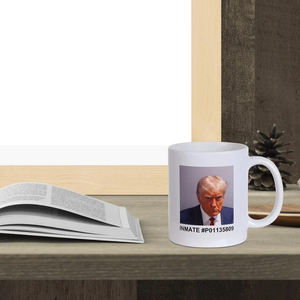 Trump Funny Coffee Mug: Front view – trump mugshot mug with centered Donald Trump mug shot and inmate number; back view - white mug with centered “MAKE COFFEE GREAT AGAIN”. A great gag gifts idea. Dishwasher safe and microwave safe, made of white ceramic with high heat resistance. Glazed with a glossy finish which looks great in any setting, the comfortable C-shaped handle ensures an easy and secure grip. Great Gag Gifts Idea: The Trump mug is a great trump merchandise for mom, dad, husband and wife. Standard 11 Ounce Coffee Mug: 3.15 inches diameter, 3.7 inches high. Looking for a gag gifts for your friends? Get your Trump coffee mug! The front view of this coffee mug is taken from Donald Trump’s mugshot in the Fulton County jail, back view is centered “MAKE COFFEE GREAT AGAIN” logo. The Trump mugshot mug made of high quality white ceramic which is dishwasher safe and microwave safe. A funny coffee mug gift for men women. Capacity: 11 oz Height: 3.7 inches Diameter: 3.15 inches