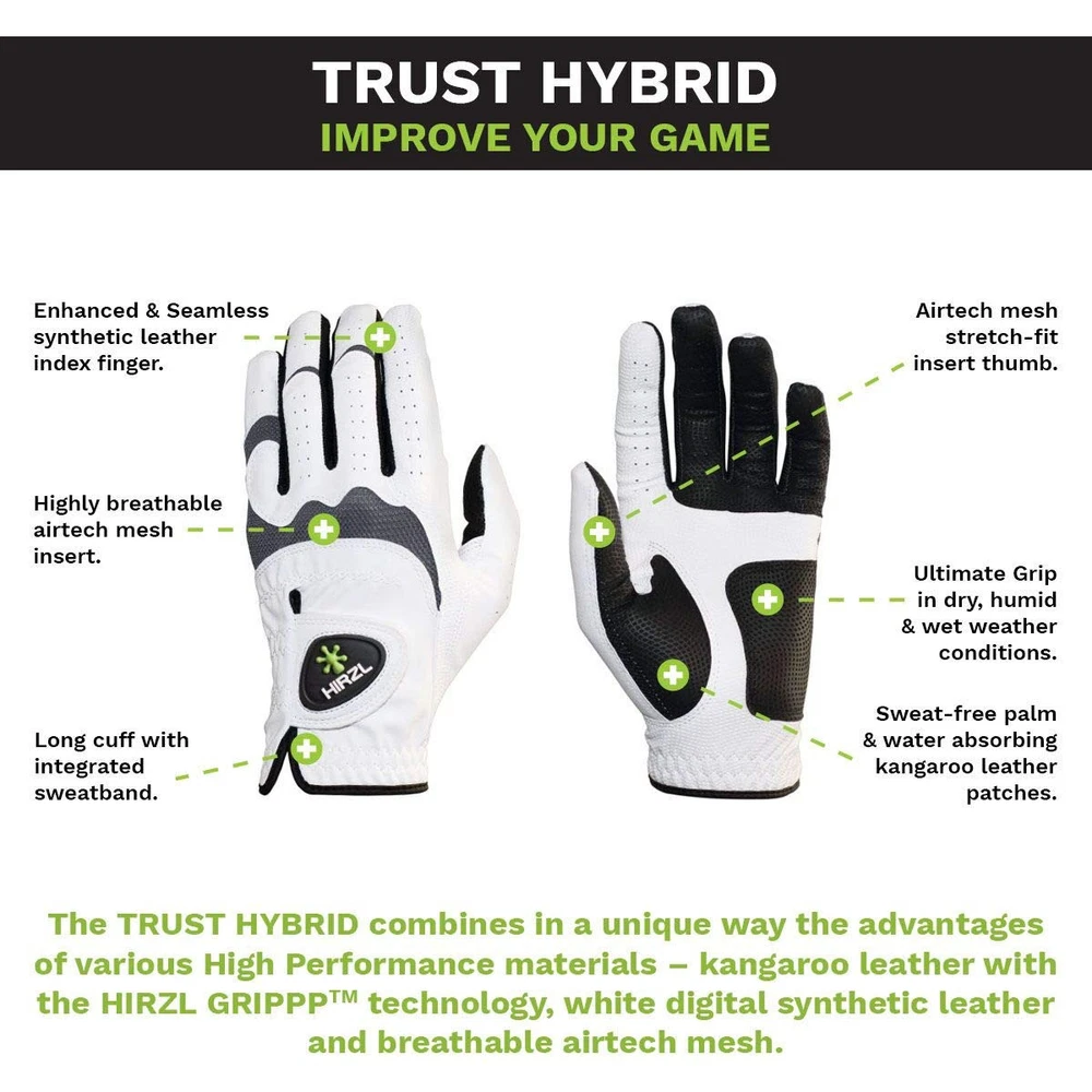 Trust Hybrid Golf Gloves, Mens Golf Glove, White/Black, Nylon, Kangaroo Leath...