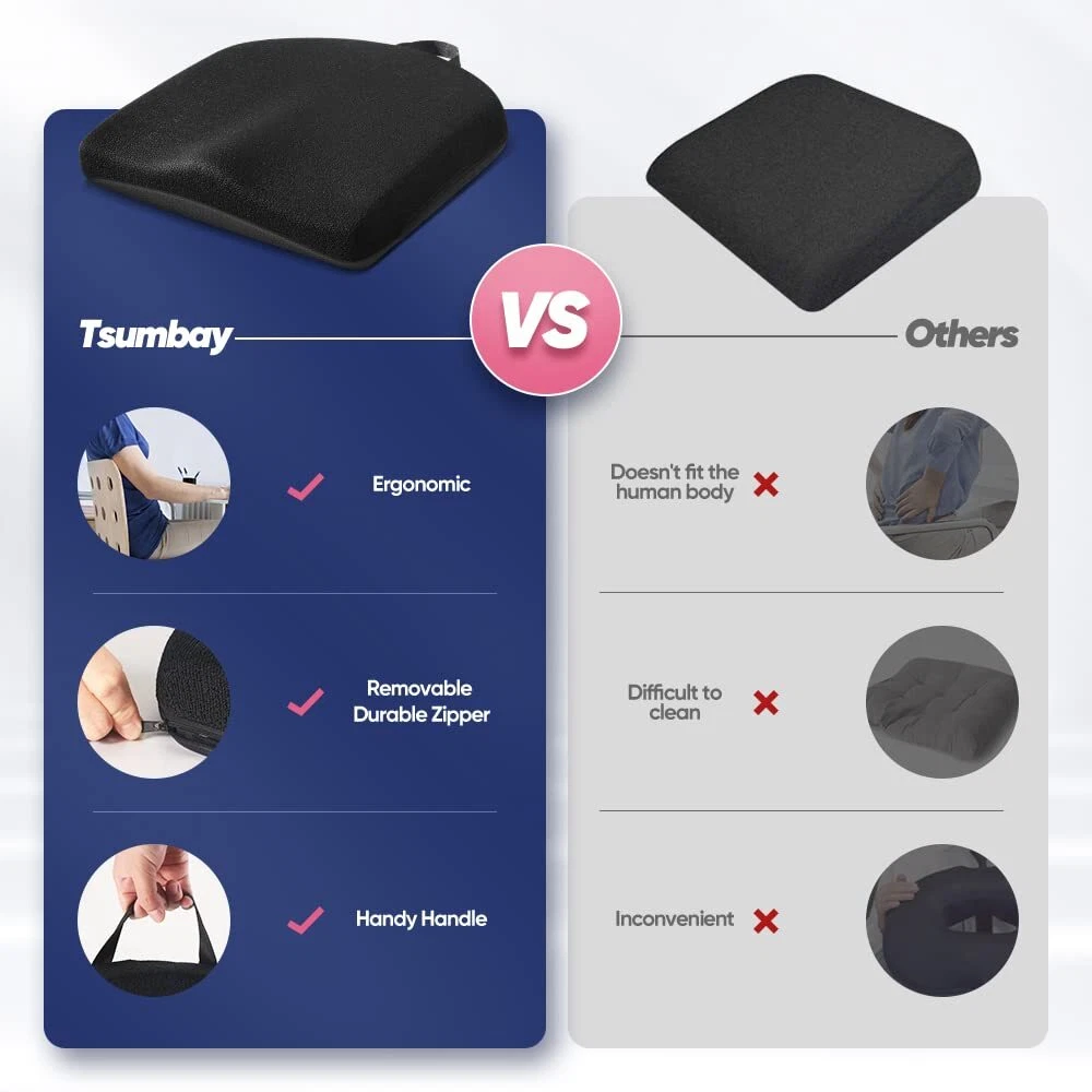 Tsumbay Memory Foam Seat Cushion, Office Soft Seat Cushion with Carry Handle, Washable Cover, Comfortable Coccyx Cushion for Home Office Chair Pad, Car Seat, Wheelchair -Black Comfortable Design:Hard seats can be very uncomfortable and cause tailbone pressure if you have to sit for a long period.Tsumbay seat cushion is firm enough to support you and soft enough to be comfortable, will support your whole body while sitting. Each premium comfortable seat cushion is 16.9”X15.0”X2.2”, to fit a variety of seats.(Product's manual error 1cm) High Quality Memory Foam: We understand the importance and impact of your comfort and well-being during your daily activities, whether in the office, car, or even on your wheelchair. Tsumbay Seat cushion is made of high-density comfortable memory cotton, which can provide you with maximum comfort and support while you have to sit for a long period . The bottom of the cushion is made of PU leather, which makes it look fantastic. Multifunction:Whether as a desk chair cushion, for home office computer chair cushion, seat cushion for office chair or wheelchair seat cushion, using this memory foam chair cushion for increasing comfort. Use the soft cushion as a stadium seat cushion or make your trip more pleasant by using it as a car seat pillow, seat cushion for driving by train or an airplane seat cushion. Portable&Easy Care:With the carry handle, the lightweight seat cushion is easier to carry and perfect for travelling. The cover is removable for easy cleaning.Just wash the cover in warm water ,you can always have the new seat cushion. After-Sales Service:Tsumbay wants you to be absolutely happy with our seat pillow. You will get 100% customer support for this seat cushion. For better shopping experience, if you have any questions, please feel free to contact us. Shipping We offer FREE shipping on all orders! We use a selection of shipping services such as UPS, FedEx, USPS etc. We only ship to the lower 48 states, no APO/FPO addresses or PO Boxes allowed. Local pickups and combined shipping options are not provided at this time. Return You can return a product for up to 30 days from the date you purchased it. Any product you return must be in the same condition you received it and in the original packaging. Please keep the receipt. Payment We accept payment by any of the following methods: PayPal Please pay as soon as possible after winning an auction, as that will allow us to post your item to you sooner! Feedback Customer satisfaction is very important to us. If you have any problem with your order, please contact us and we will do our best to make you satisfied. Contact Us If you have any queries, please contact us via ebay. We usually respond within 24 hours on weekdays. Please visit our eBay store to check out other items for sale! Thank you for shopping at our store.