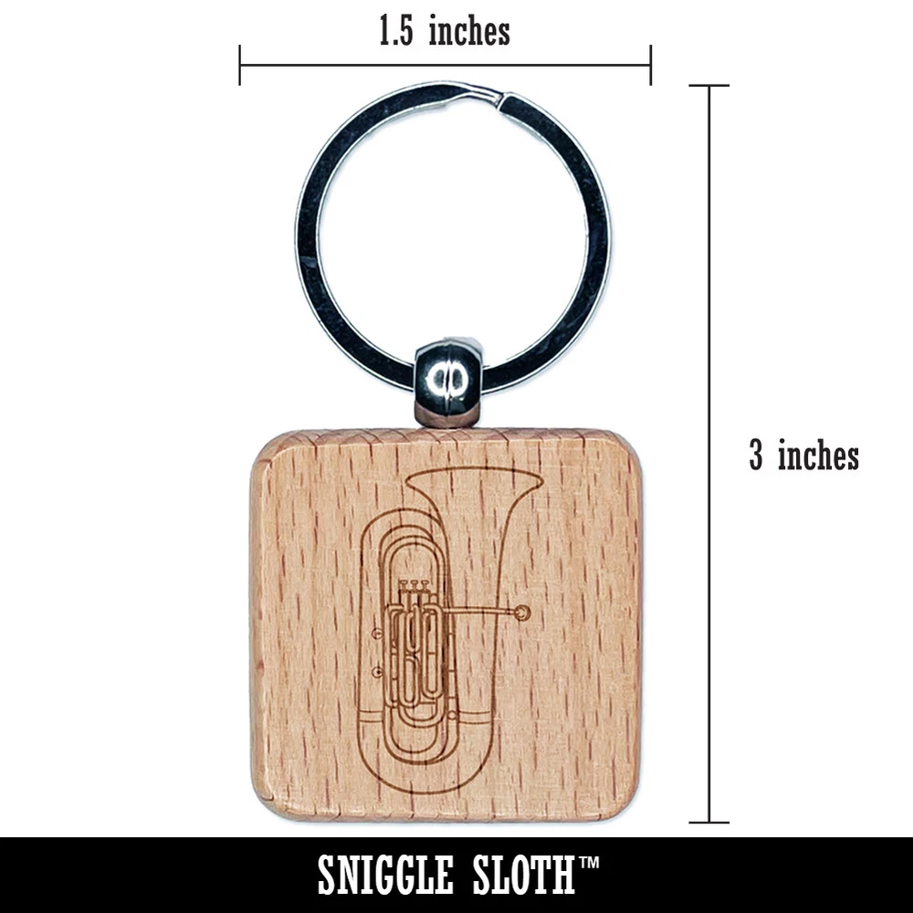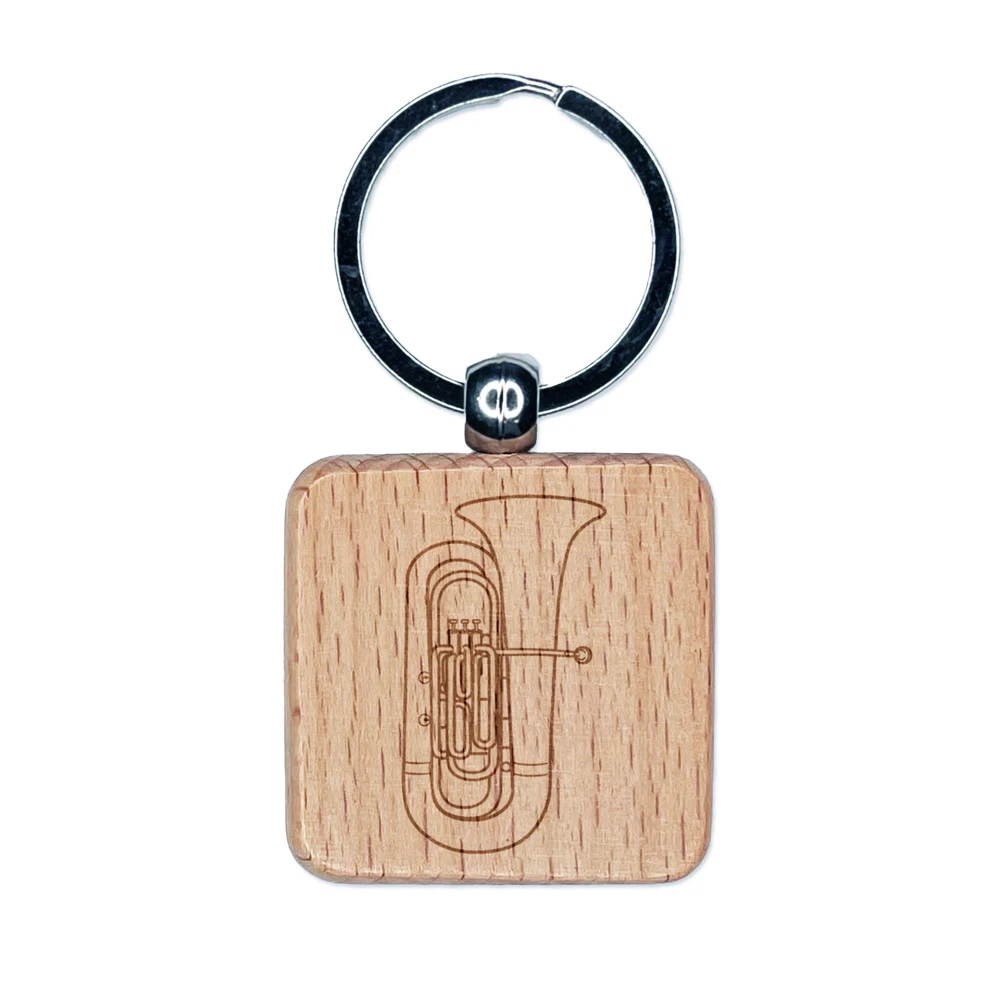 Tuba Brass Musical Instrument Engraved Wood Square Keychain Tag Charm