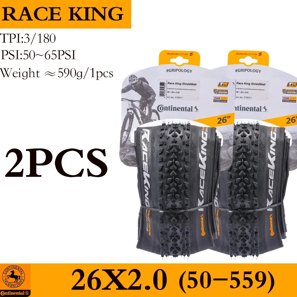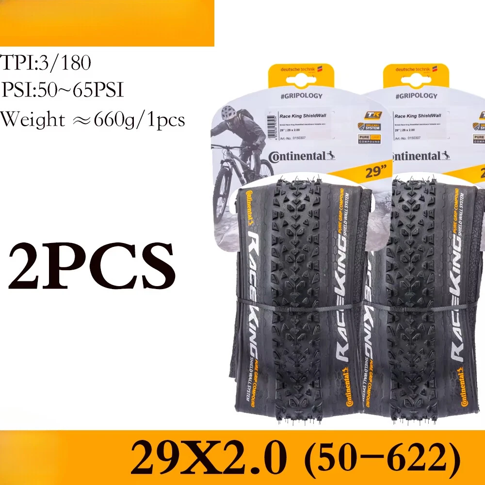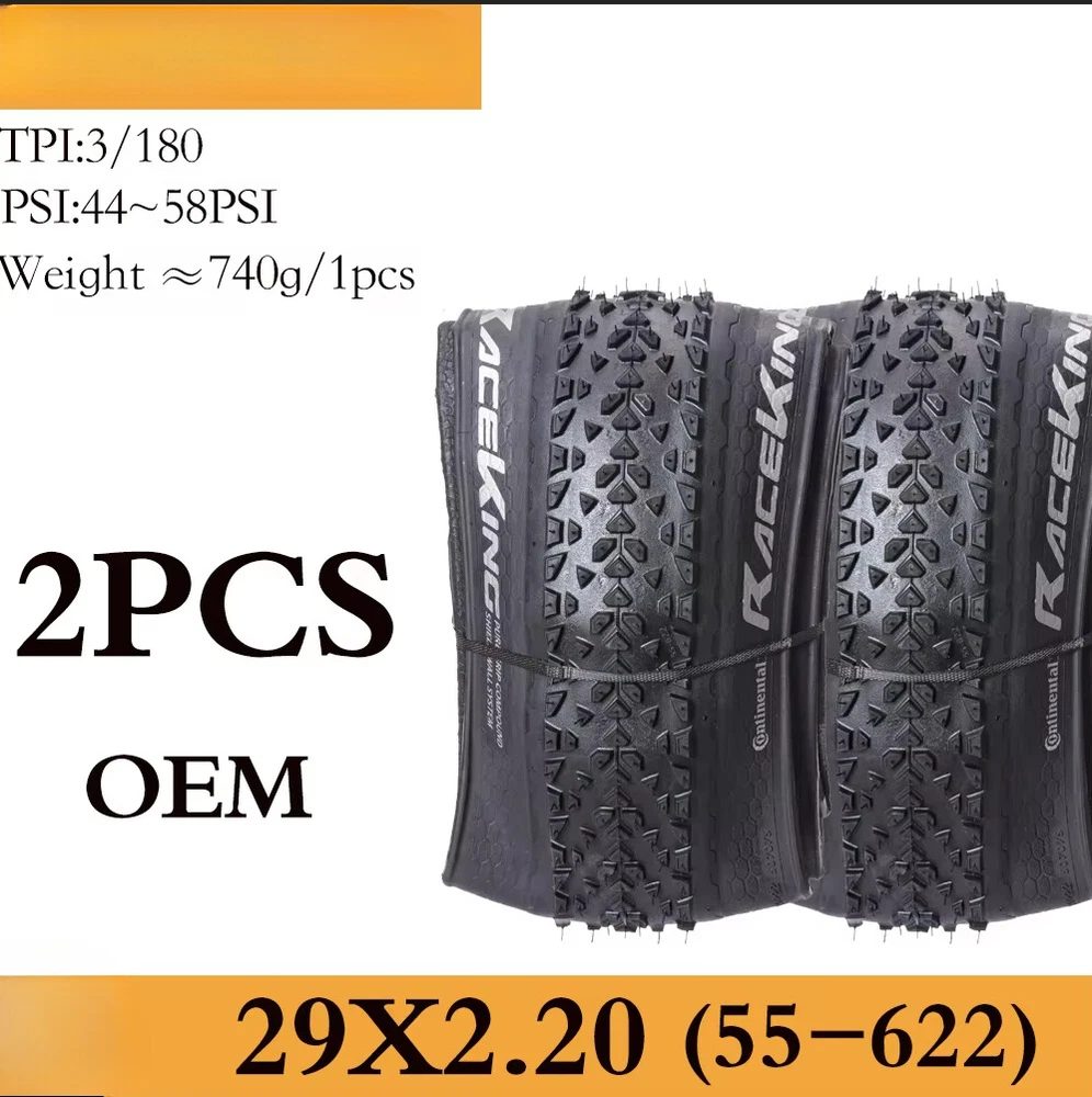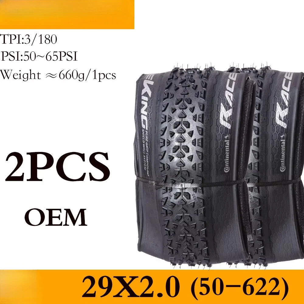 For the skilled: A hearty tyre that wants to be raced Impressive in cross-country races and marathons, for hardtails and full suspension race bikes, also popular with jump bikers. A voluminous carcass gives great self damping qualities whilst the the low rolling tread pattern keeps the speed up through the turns and through to the straights. ·Fast rolling XC dry conditions tyre ·World XC Championships winning tyre ·Good for XC & 4X racing Tips 1. The RACE KING sold in this link is RACE KING Performance Folding Bead. This tire does not carry (BlackChili) and (ProTection) technology 2. All tires in this link are tubeless tires 3.The "OEM version " refers to the tire version that the tire manufacturer specifically supplies to the brand bicycle. The brand bicycle factory uses this "OEM version" of the tire to assemble the entire vehicle, so no additional packaging is required. The regular retail version has a complete package because it needs to be displayed to consumers. The only difference between OEM tires and retail tires is the color of the logo.(The Continental logo for OEM is white, and the Continental logo for retail OTC versions is yellow.) 4.Continental tire bending problems are mostly caused by improper tire installation. If you encounter such problems, please leave a message to customer service for help. The above official website data is for reference only, the actual data shall prevail ↑ Product sellpoints Folding Convenience:Folding tire design allows for easy storage and transport, making these Continental tires a practical choice for cyclists on the go. Tubeless Compatibility:Enjoy the benefits of tubeless technology with these Continental tires, reducing the risk of punctures and enhancing traction. Seasonal Adaptability:The 4 season tire design ensures year-round performance, making these Continental tires a reliable choice for all conditions. Versatile Sizes:Available in 26, 27.5, 29 inch sizes, these tires cater to a wide range of mountain bikes, offering flexibility in choice. 26x1 95 Bike Tire|Maxxis Mtb Tyres 29|OEM Quality:Experience the same quality as brand bicycles with the OEM version of Continental tires, ensuring durability and performance.