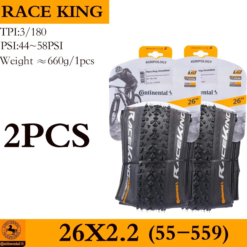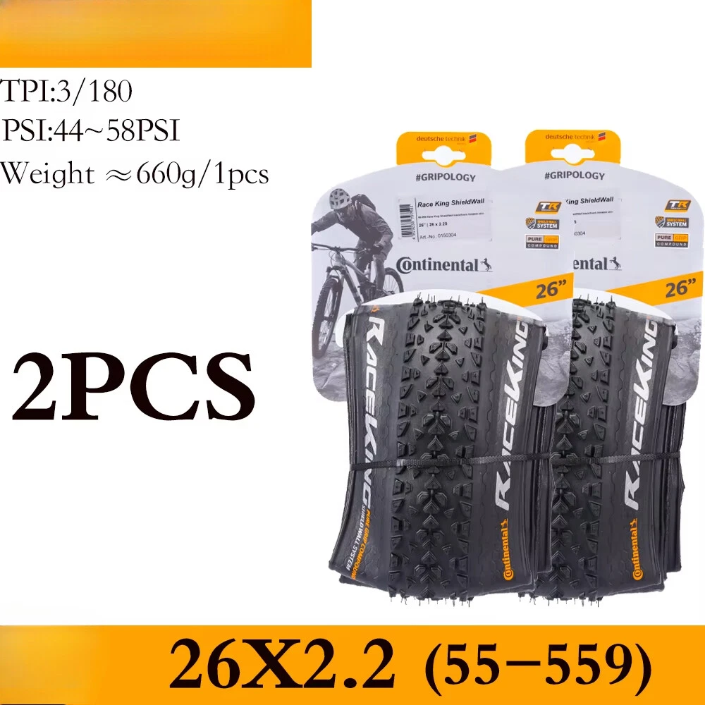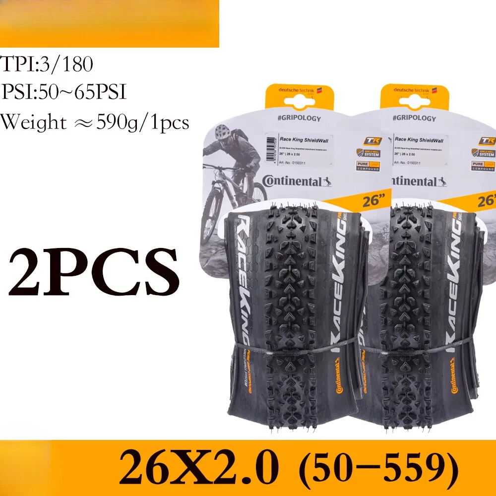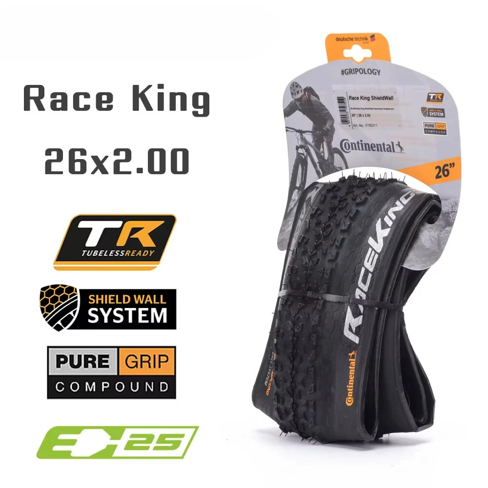 For the skilled: A hearty tyre that wants to be raced Impressive in cross-country races and marathons, for hardtails and full suspension race bikes, also popular with jump bikers. A voluminous carcass gives great self damping qualities whilst the the low rolling tread pattern keeps the speed up through the turns and through to the straights. ·Fast rolling XC dry conditions tyre ·World XC Championships winning tyre ·Good for XC & 4X racing Tips 1. The RACE KING sold in this link is RACE KING Performance Folding Bead. This tire does not carry (BlackChili) and (ProTection) technology 2. All tires in this link are tubeless tires 3.The "OEM version " refers to the tire version that the tire manufacturer specifically supplies to the brand bicycle. The brand bicycle factory uses this "OEM version" of the tire to assemble the entire vehicle, so no additional packaging is required. The regular retail version has a complete package because it needs to be displayed to consumers. The only difference between OEM tires and retail tires is the color of the logo.(The Continental logo for OEM is white, and the Continental logo for retail OTC versions is yellow.) 4.Continental tire bending problems are mostly caused by improper tire installation. If you encounter such problems, please leave a message to customer service for help. The above official website data is for reference only, the actual data shall prevail ↑ Product sellpoints Folding Convenience:Folding tire design allows for easy storage and transport, making these Continental tires a practical choice for cyclists on the go. Tubeless Compatibility:Enjoy the benefits of tubeless technology with these Continental tires, reducing the risk of punctures and enhancing traction. Seasonal Adaptability:The 4 season tire design ensures year-round performance, making these Continental tires a reliable choice for all conditions. Versatile Sizes:Available in 26, 27.5, 29 inch sizes, these tires cater to a wide range of mountain bikes, offering flexibility in choice. 26x1 95 Bike Tire|Maxxis Mtb Tyres 29|OEM Quality:Experience the same quality as brand bicycles with the OEM version of Continental tires, ensuring durability and performance.