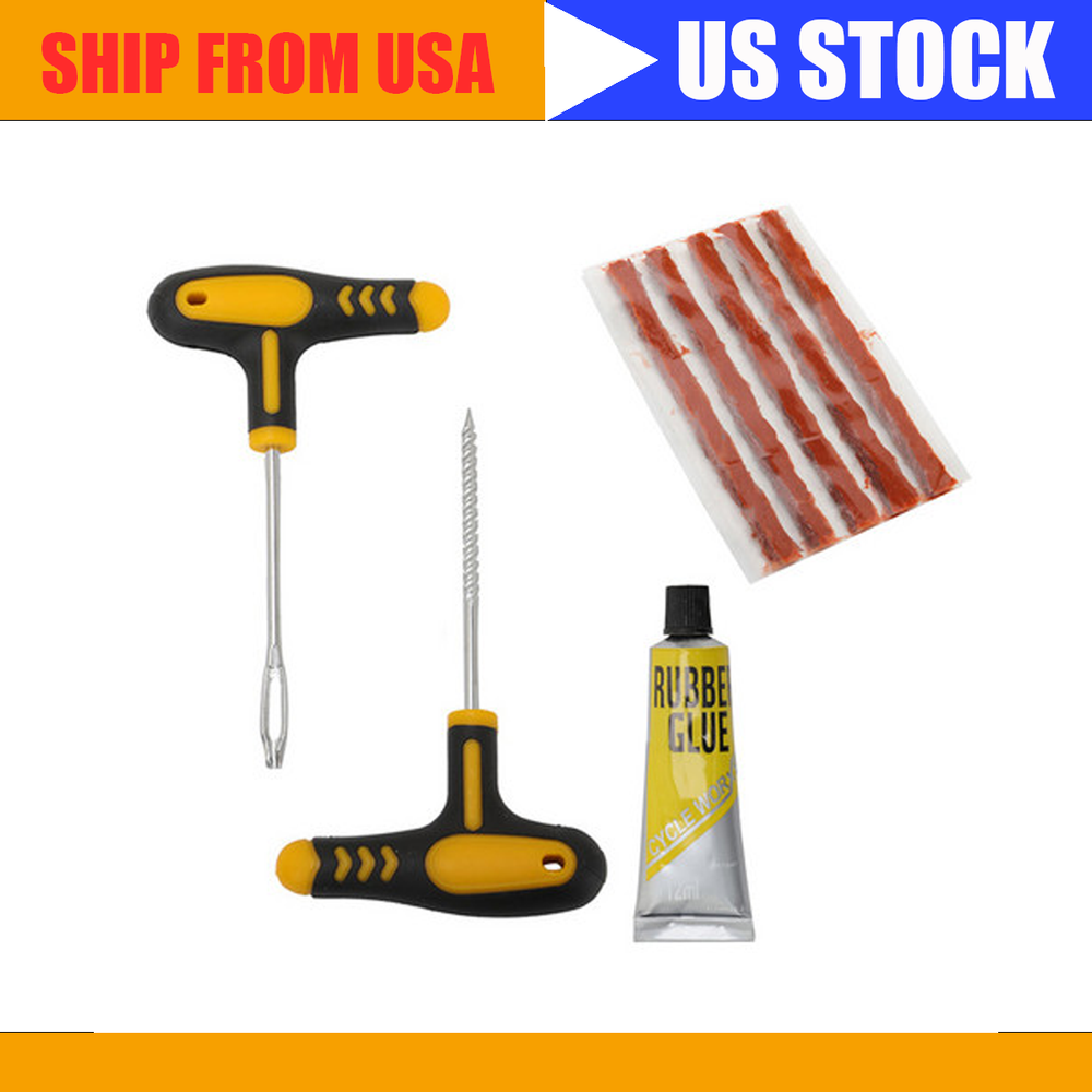 Car Tubeless Tyre Tire Puncture Repair Plug Repair Kit Needle Patch Fix Tool Set Details Car Tire Repair Tools Kit with Rubber Strips Tubeless Tyre Puncture Studding Plug Set for Truck Motorcycle Features: 1.Emergency Vehicles Puncture Repair Kit for Tubeless Tires. 2.The Car Tyre Repair kit will allow you to mend punctures quickly and effectively. 3.Durable Plastic Handles providing great grip. 4.Essential for Vehicles with Tubeless Tires. 5.This Rasper Tool allows Tire hole widening and cleaning. 6.Needle Tool allows Tyre Rubber Strip insertion. 7.Useful Tool to keep in the car with spare wheels. How to use: 1.Remove object that causedthe puncture. Insert the rasp tool into hole and slide up and down to roughenand clean the inside of the hole 2.Coat needle tool withrubber cement and slide up and down into hole to lubricate area. 3.Insert a repair plughalfway through slit of needle. 4.Gently push needle throughhole until about half inch is left of the plug. 5.Pull split eye tool leavingthe plug inserted into hole. 6.Trim excess plug stickingout and let dry. Inflate tire and test for leak Package Content: Emergency Tubeless Tyre Tire Puncture Repair Tool Kit includes: 1x Rasper Tool. 1x Needle Tool. 1x Rubber Solution. 5x repair Strips. On Jun 18, 2024 at 00:28:52 PDT, seller added the following information: On Aug 13, 2025 at 23:01:20 PDT, seller added the following information: