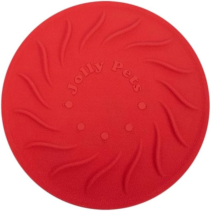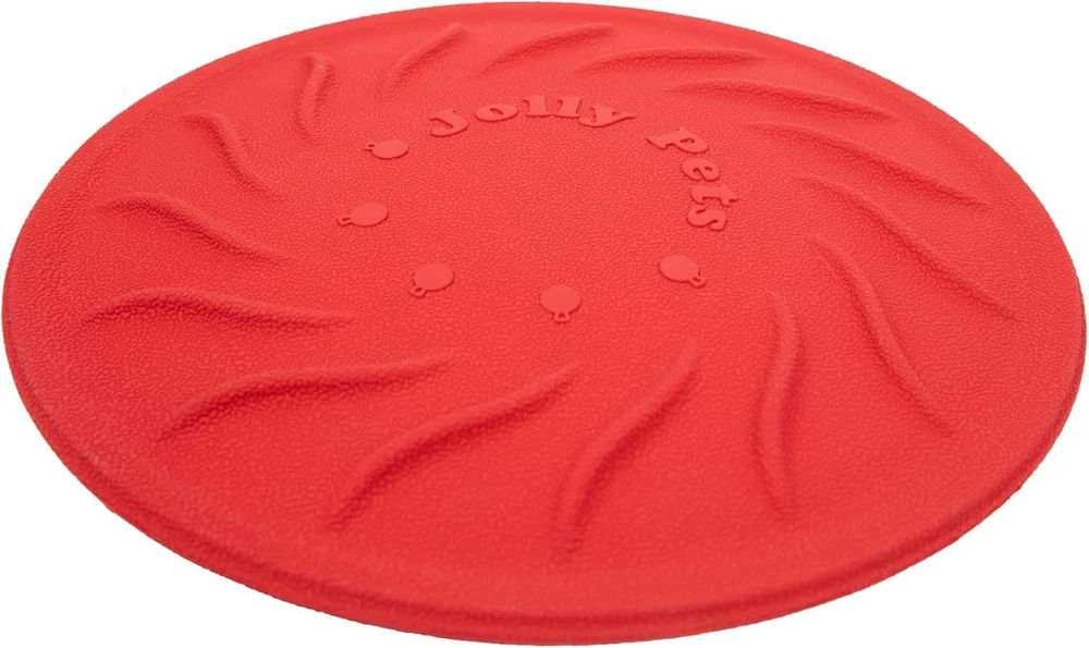 Soft yet Ultra Durable: The Jolly Tuff Flyer boasts a unique combination of softness and remarkable durability. Crafted from high-quality materials, this frisbee is designed to withstand the toughest of chewers, ensuring long-lasting play sessions. Gentle on Teeth and Gums: The Jolly Tuff Flyer's soft yet robust construction makes it gentle on your dog's teeth and gums, reducing the risk of any discomfort or damage during enthusiastic catches and retrieves. Say goodbye to worries about potential injuries during play! Specially formulated “tuff” rubber and unique “treaded” surfaces help clean teeth while dogs chew Idea for water-based catch & fetch – it floats! We design our toys to be durable, but no dog toy is indestructible. For safety, you should always supervise while your dog plays with any toy. Remove all packaging and dispose or properly. Parts of this item can be a choking hazard to pets and children if removed from the toy. If any becomes loose, detached, or destroyed, remove the toy and discard immediately. The Jolly Tuff Flyer is not only an excellent choice for land-based play but also floats effortlessly on water, making it perfect for splashing around during pool or beach adventures. Additionally, this toy is specifically designed and guaranteed to withstand the mighty jaws of powerful chewers, providing a safe and durable play experience that will stand the test of time.