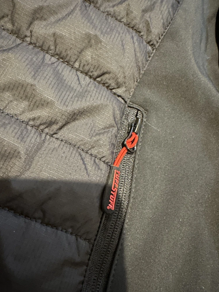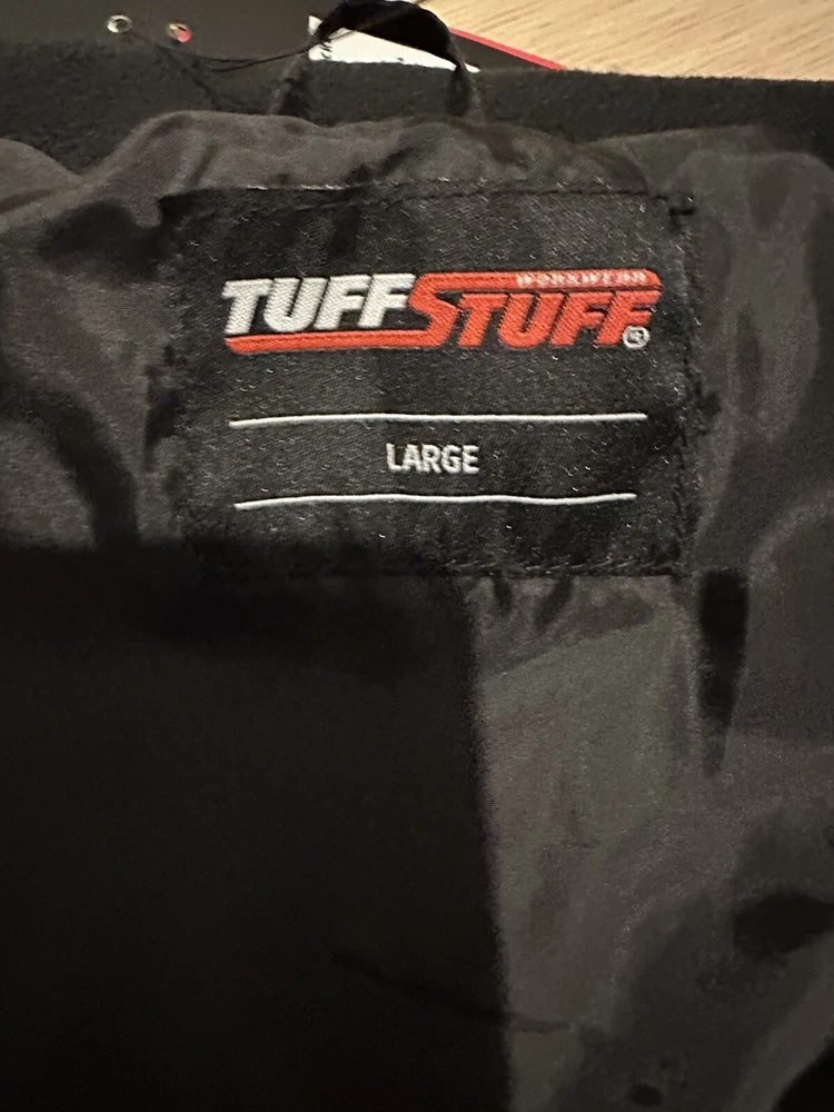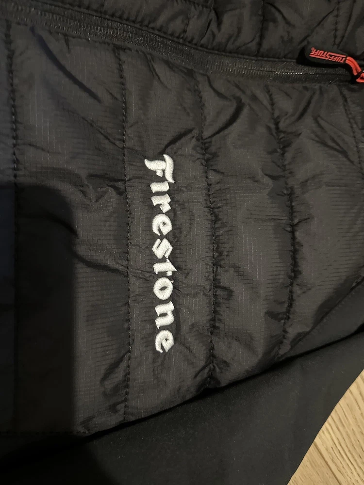 Tuffstuff Hybrid Softshell Ripstop Jacket Black Lightweight Work Coat Embroidered with Firestone logo Size large BNWT