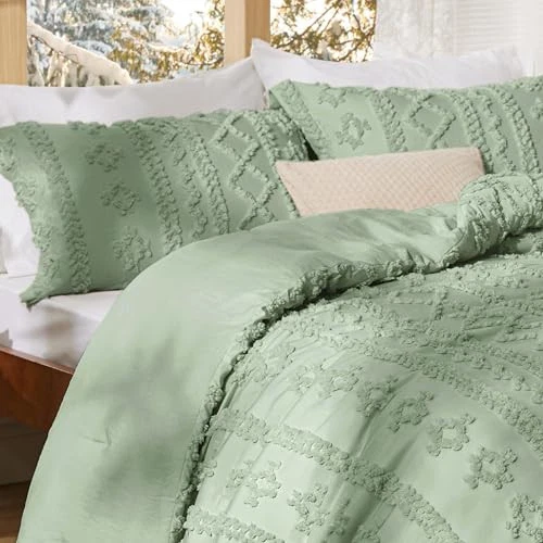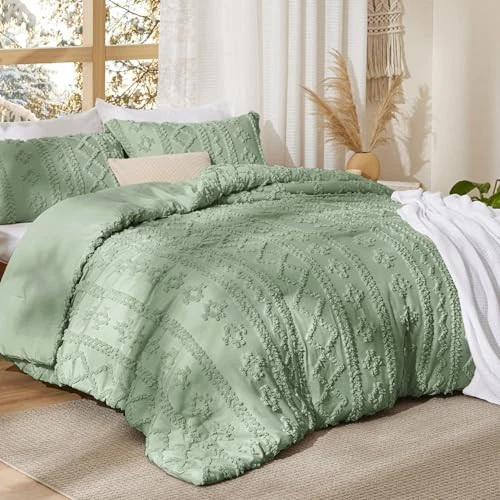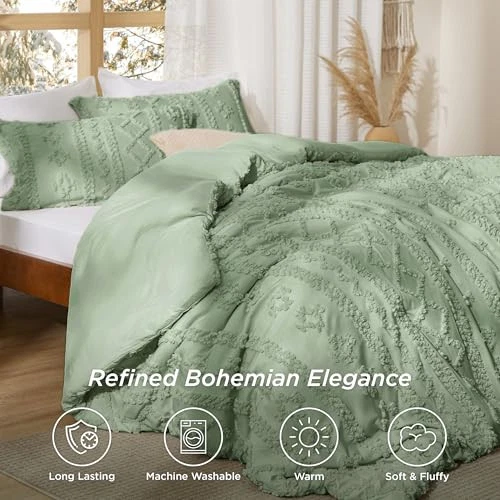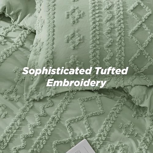 Return Policy Fast Delivery Trusted seller Tufted Boho Comforter Set Queen Size - Sage Green Boho Bed Set, 3 Pieces Farmhouse Shabby Chic Embroidery Bedding, Gifts for Woman, Soft Jacquard Queen Comforter for All Seasons Product Description Boho Design: Inspired by a chic boho palette with elegant embroidered tufts, this comforter set adds a touch of exquisiteness and sophistication to any sleeping space. Exceptional tufted embroidery: Each tuft is meticulously designed and crafted through 32 precise steps, resulting in a unique 3D texture that is visually striking. Its smooth surface provides an ultra-soft hand feel without any crinkly noise. Soft and Breathable: Filled with high-quality polyester microfiber, this comforter set provides ultra-soft, cozy comfort without any crinkly noise. It offers breathable warmth and a fluffy feel. Long-lasting: This comforter set is Standard 100 by OEKO-TEX certified for durability, withstanding washes without color fading or seam slippage. Easy Care: This comforter set is machine washable. Simply machine wash on a gentle cycle separately with cold water, line dry or tumble dry low for a like-new restoration. What You Can Get: This queen comforter set includes 1 comforter (90" x 90") and 2 pillow shams (20" x 26" + 2") Shipping Returns Payment Shipping Shipping is FREE to all addresses other than APO/PO boxes in the lower 48 states. All our stock ships from US-based warehouses. Shipped via USPS or UPS (depending on location and package weight) Unless stated otherwise, all orders will ship within 24-72 hours of your payment being processed. Check our feedback to see the great reviews of FAST shipping we offer. Returns Seller does not accept returns Payment We currently accept payment via eBay managed payments only. Once payment is cleared, we will dispatch your shipment within 1-3 business days. Please refer to the "Shipping" tab for more information regarding shipping speed to your destination.
