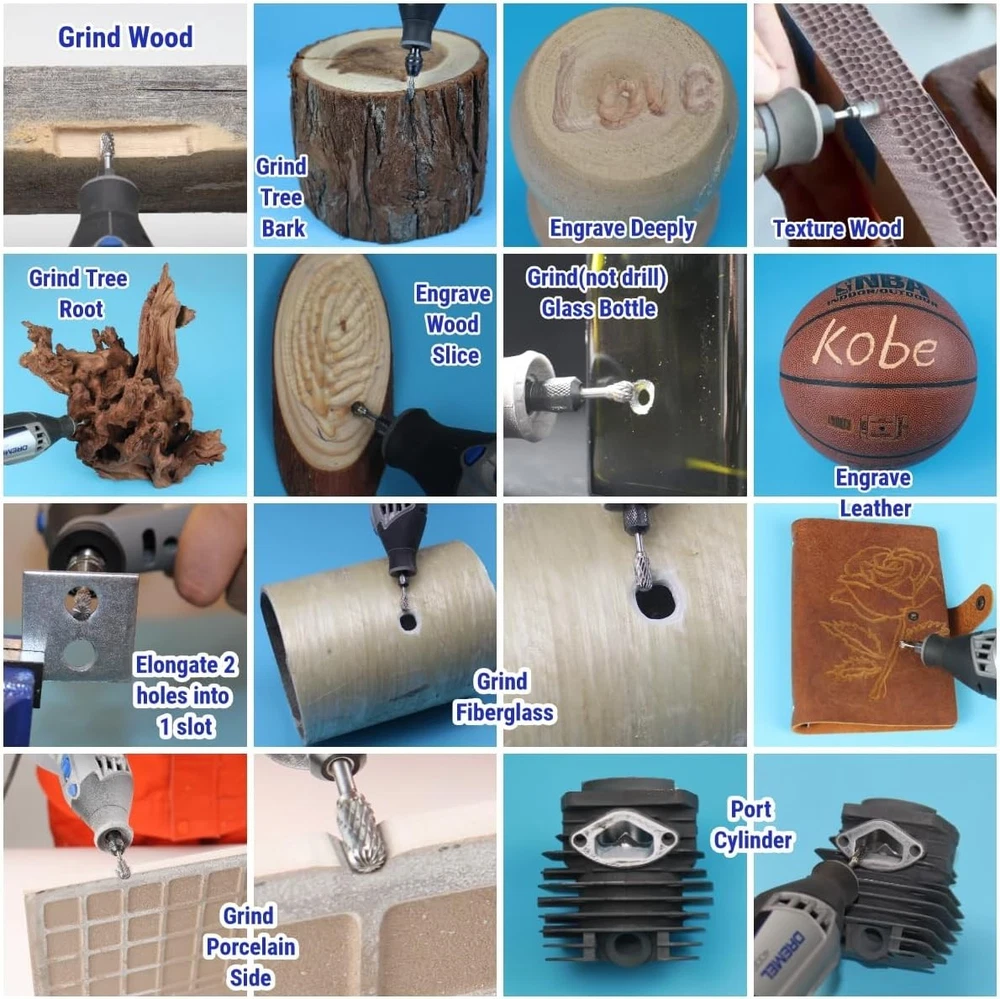 100% Money Back Guarantee if you are not satisfied with your purchase! ____________________ Description: 10 Pcs Carbide Burr Set 1/8" Shank Compatible with Dremel Milwaukee Bits Rotary Tools Attachment Kit Rasp Drill File Accessories Metal Wood Stone Steel Grinding Carving Cutting Polishing ●The 10pcs double cut tungsten carbide burr bits set compatible with Dremel metal grinding bits, compatible with Hardell Milwaukee DeWALT angle or straight air or electric die grinder or drill. ●More aggressive than diamond grinding bits stone grinding bits sanding drum sanding bits. Used for 3-jaw chuck drill (not optimal) and high speed rotary tool (optimal). ●A must-have versatile shape carbide burr bits kit cutting bits grinding bits carving bit engraving bits deburring bits drill bits for hard metal steel aluminum stone wood plastic. ●3mm cylindrical shank compatible with Dremel 1/8"(3.175mm) shank bits compatible with Dremel rotary tool rasp file accessories wood carving bits compatible with Dremel flex shaft. ●Perfect for tight spaces than grinding wheel and grinding discs, great for detail work. For lots of materials removal please use our larger shank burrs bits and 500W+ rotary tool. ___________________ 100% Money Back Guarantee: We offer 30 Day Money Back Guarantee from the day you purchased if you’re not satisfied with your product. If you have any questions about our products, please contact us as soon as possible. Customer satisfaction is our absolute priority. Shipping: We are always working hard to ensure your package arrives as soon as possible. Please understand that some factors like weather, high postal traffic, and the performance of shipping companies are outside of our control. We offer free shipping to the lower 48 states and ship within 3 business days of payment, usually sooner. We do not accept P.O. Boxes. Please provide a physical address. You will be notified via eBay messages as soon as your items ship. Delivery: We will ship out the item in 2-3 working day after receiving the payment. Usually the delivery takes 2-5 business days. If you don't receive the items after 10 days, please feel free to contact us. You will get a replacement or a full refund. Please DO NOT open a return request or leave negative feedback without asking for help. Returns (Get Free Return Label): We offer a 30-Day Return Policy on defective/wrong items or items which you are not completely satisfied with. You have the option for a full-refund or an exchange of the item. No need to buy eBay return label. Contact us via eBay messages and get free return label. Returned items must be in all of the original packaging and include all of the original accessories or items that came with it. The item and package should be in original condition. Contact Us: Any queries or issues incurred, please feel free to contact us via eBay message, we will get back to you within 24 hours. Please DO NOT open a return request or leave negative feedback without asking for help. Feedback: Your feedback is very important to us. After you get your package and you are satisfied with our service, please leave us positive feedback. We are highly appreciated for your POSITIVE feedback and 5 stars. Enjoy shopping.