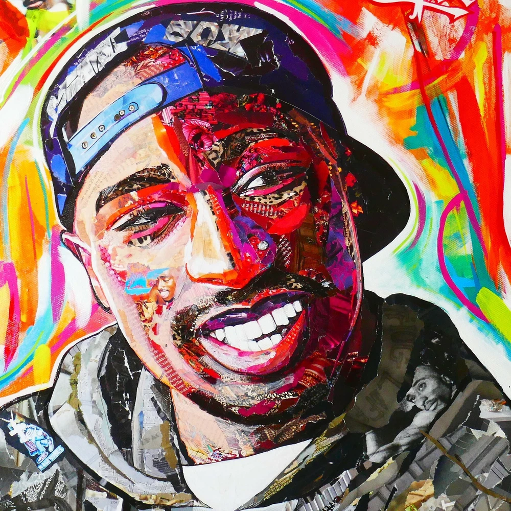 This is a mounted, high quality Giclee print of my ORIGINAL ripped paper artwork of Tupac. The original is created entirely of ripped paper ...ZOOM IN - image and text relating to Tupac to be found in the artwork You will not find this image anywhere else. It will look stunning in your home or will make a wonderful gift for a special person. 15 1/4 inch height x 12inch width.