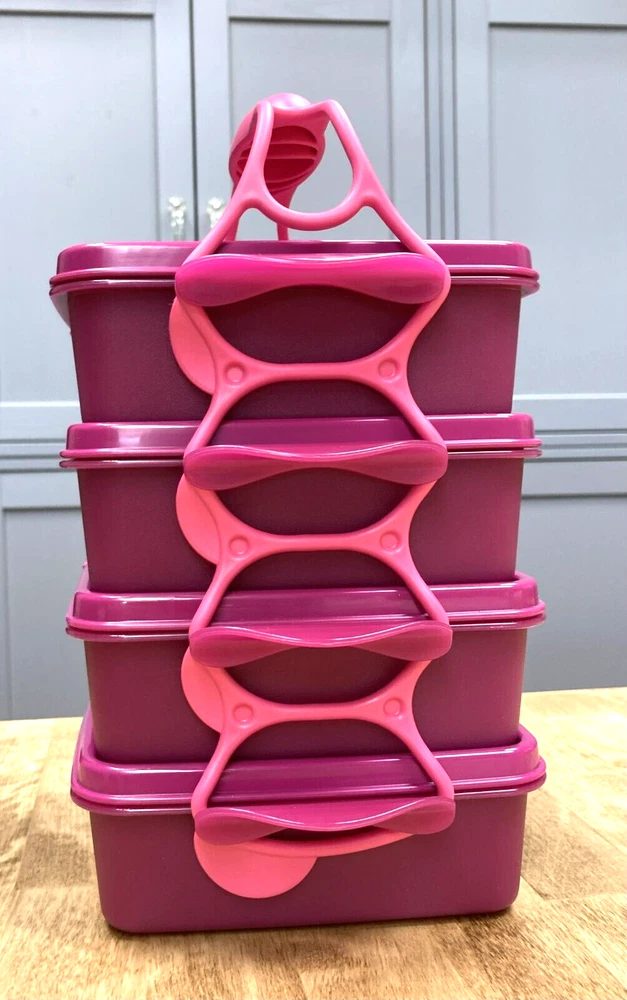 Tupperware CrystalWave Goody Box Container Set with Handle-Color Choice-NEW-SHIPPING INCLUDED Six sets available 3 of each color. The containers are each 3.5 cups/850ml-The price is per set purchased. The containers are microwave safe. Perfect for leftovers, lunches or transporting food to an event. Look at the pictures and ask any questions before bidding. *Check out our other auctions for lots of other neat items! * If you choose to bid and it is part of the Global Shipping Program please be aware that you will also be charged fees from Global Shipping that have nothing to do with me.
