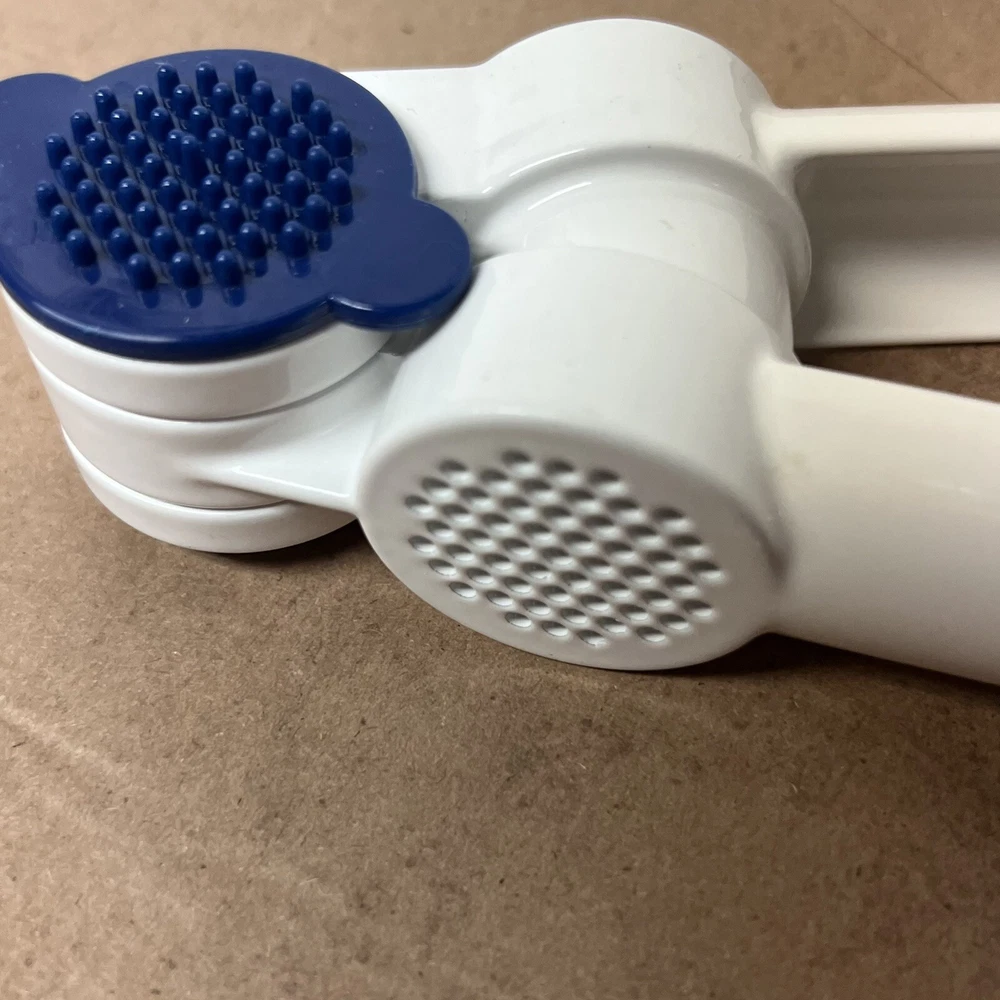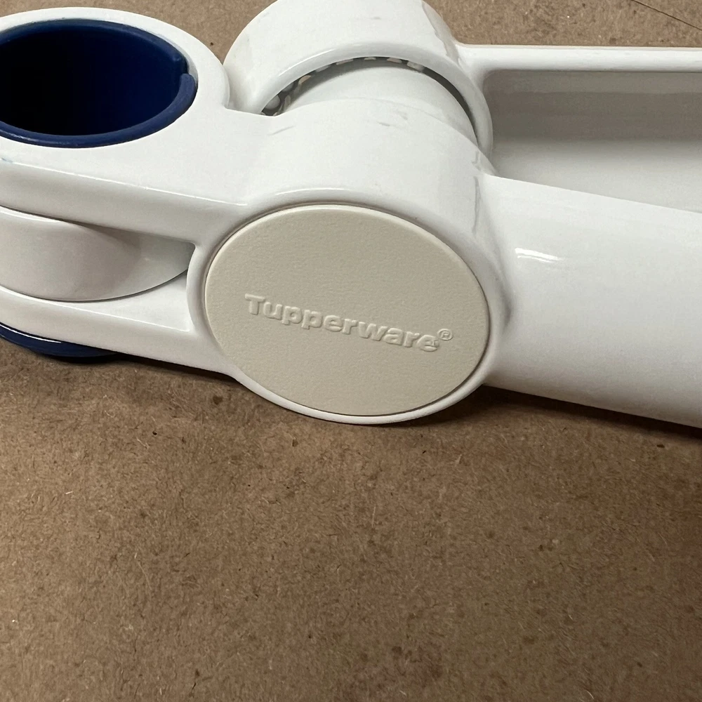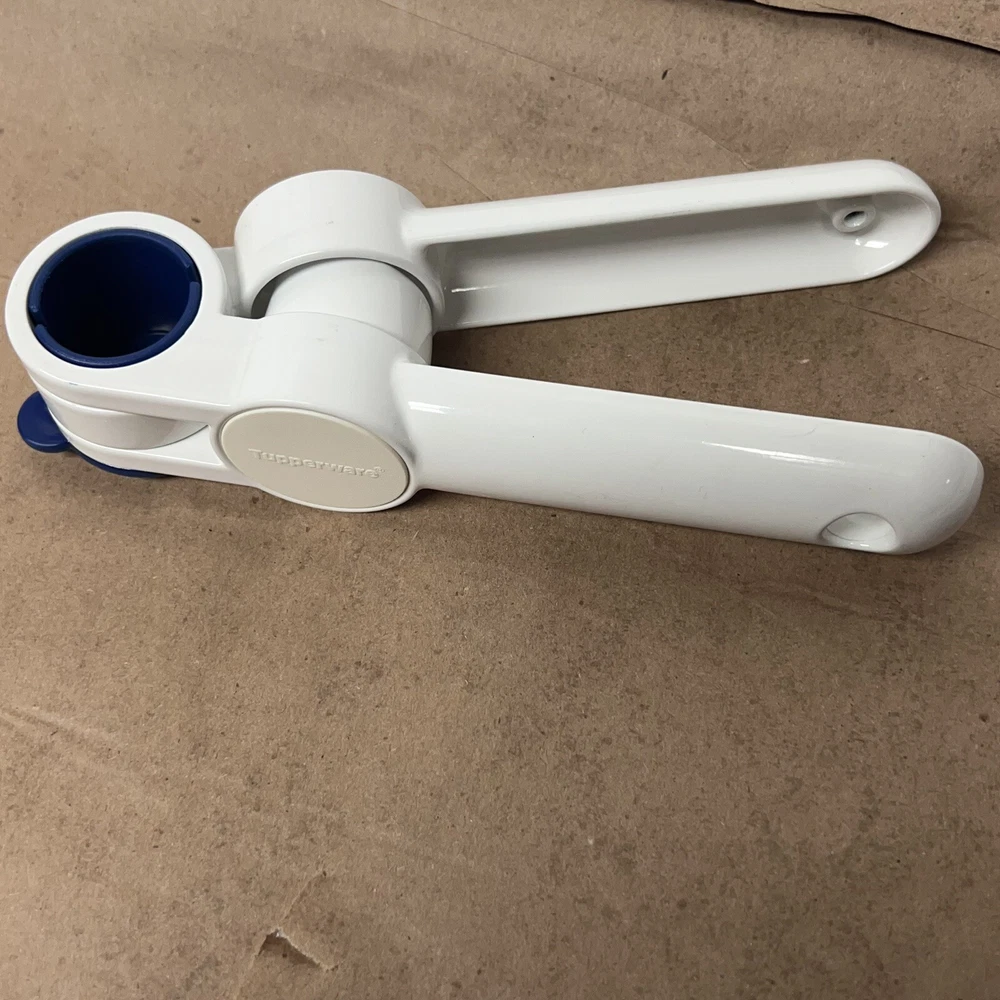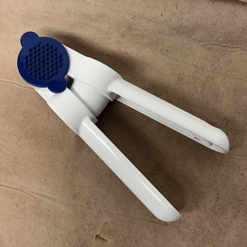 Tupperware Garlic Press Vintage Kitchen Gadget White & Bold N Blue
