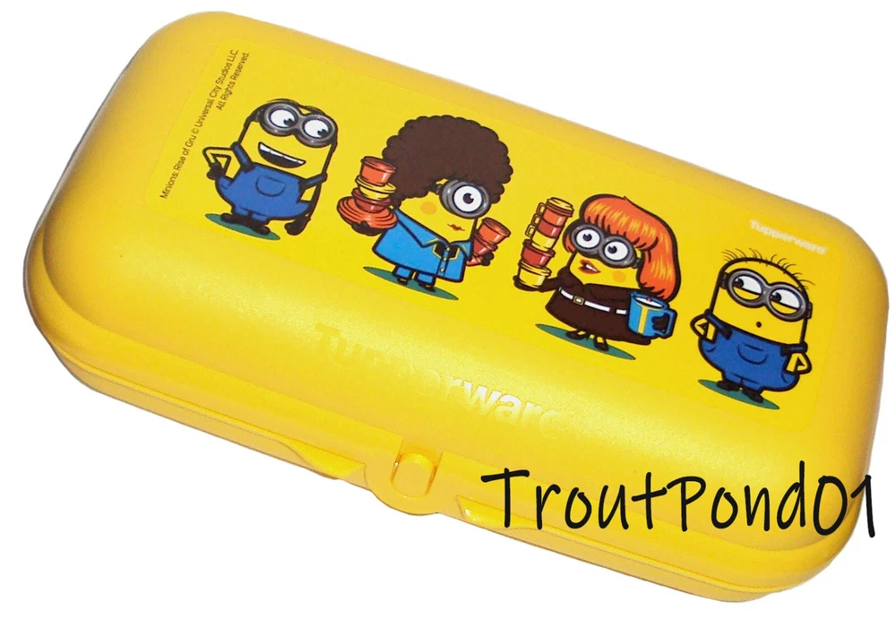 Tupperware (1) Packables Box Storage Container Oyster, Minions Multi-Character Design. - Yellow with Minions design. - Container is approx 8 1/2 x 4 1/2 x 2 in. - Hinged container with clasp closure. - Ideal for snacks, organizing trinkets and treasures, travel, craft items, first aid supplies, sewing notions, snacks, pencil box, etc. - Container will accommodate a hoagy or sub sandwich. - Dishwasher safe BPA-free. Brand new. Questions are welcome, combined shipping available, fast service! International Buyers: Please be aware of the laws regarding import into your country. Your country may assess a customs fee or tax on this purchase. United States sellers do not have any control over the tariffs, taxes, and customs fees imposed by your country. You are solely responsible for any import duty or tax that your country may impose. No refunds or partial refunds will be made if you choose to abandon the package due to import fees. If a package is returned to the seller, shipping cost is non-refundable. Please do not ask to have customs information falsified as it is against the law.