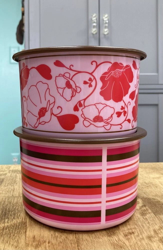 Tupperware One Touch Canisters-Color Choices-Valentines-Hearts-NEW-SHIPPING INCLUDED Several choices available the price is per item purchased. Pink Seal Set-940ml/4 cups Brown Seal Set-940ml/4 cups Red Seal Canister-1.4L/6 cups Look at the pictures and ask any questions before bidding. *Check out our other auctions for lots of other neat items! * If you choose to bid and it is part of the Global Shipping Program please be aware that you will also be charged fees from Global Shipping that have nothing to do with me.