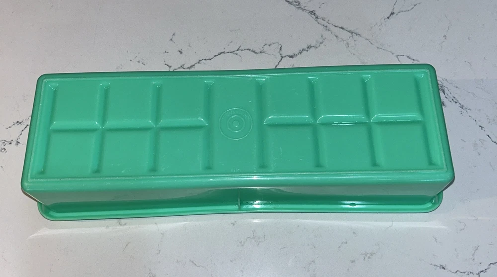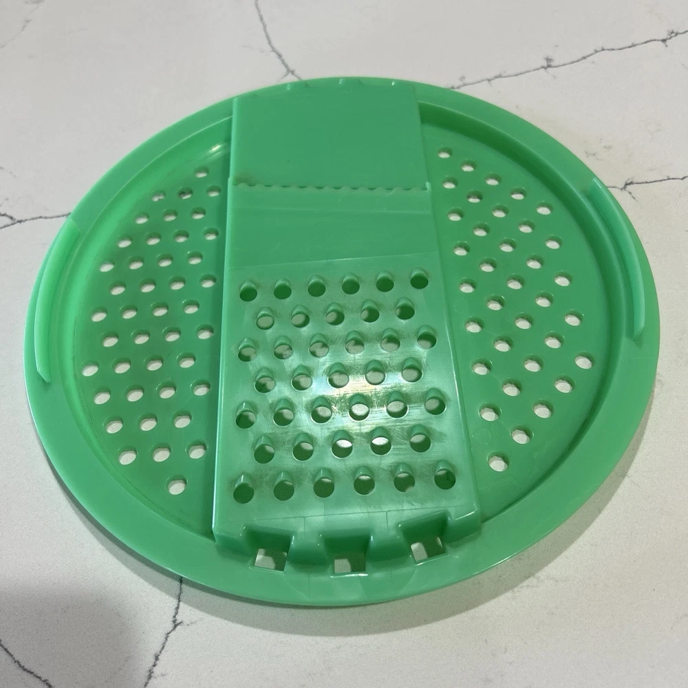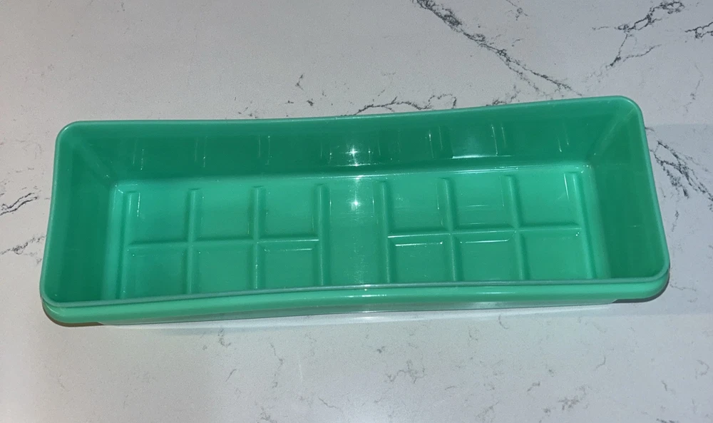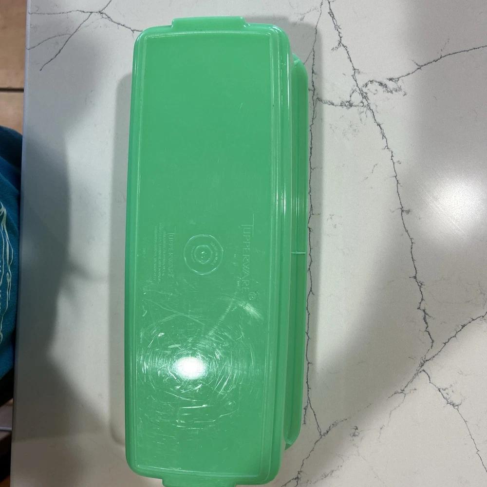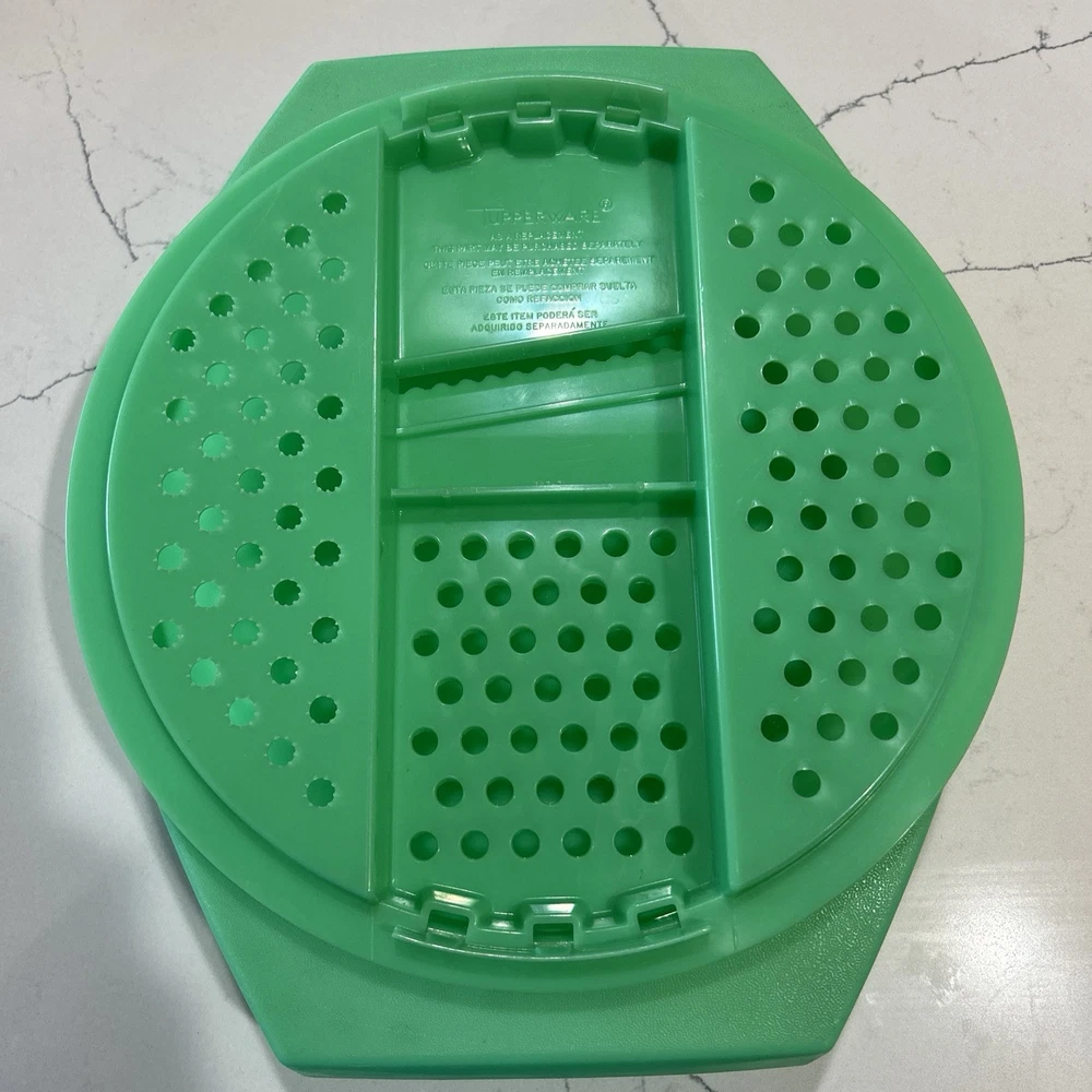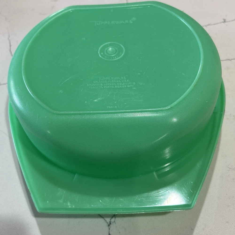 This vintage Tupperware storage container set is a must-have for any kitchen! The set includes 9 items, with a variety of shapes and sizes to fit all your storage needs. The containers are made of durable plastic and feature a solid green color, with a retro/vintage style that adds a touch of charm to your kitchen. The set includes a lettuce crisper, veggie crisper, bread container, grater, and strainer, as well as lids with an airtight seal to keep your food fresh and easy to clean. These containers are an original Tupperware product, made in the United States, and are in excellent condition. Don't miss out on this unique and practical collectible! Please note any imperfections, discoloration, scratches, etc. in the photos. Will provide more photos upon request. Listing 1499