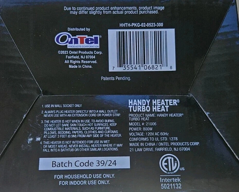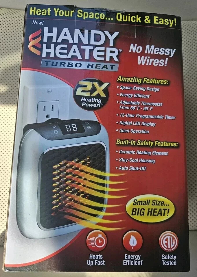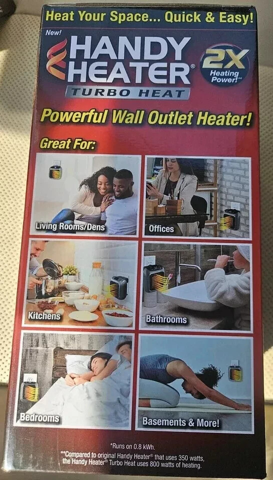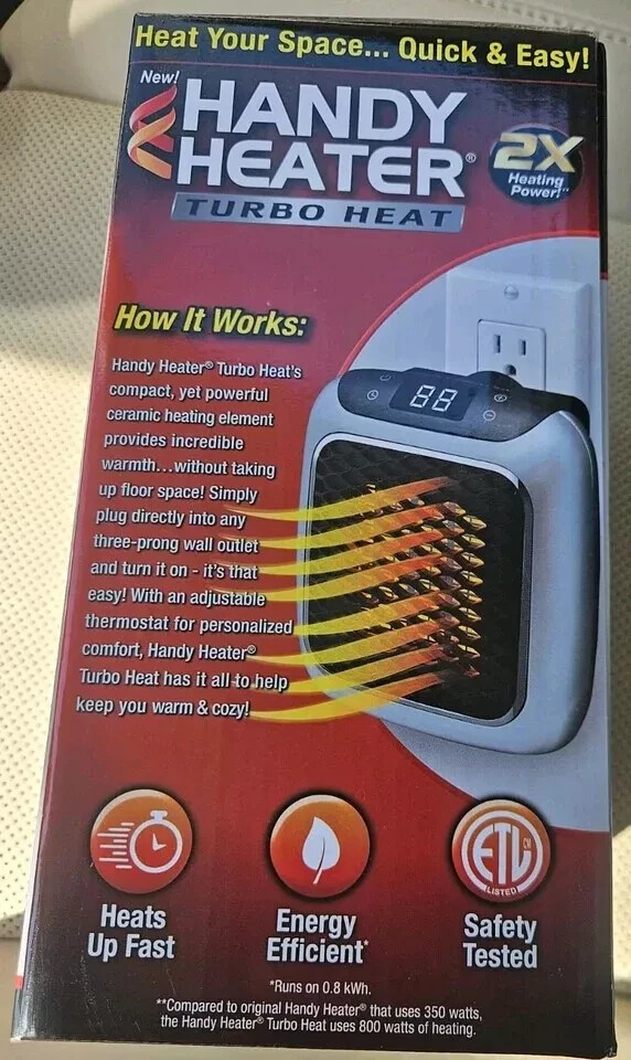 Turbo 800W Handy Heater Compact Wall-Outlet Space Warmer