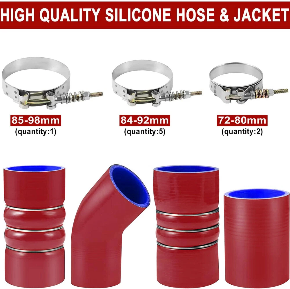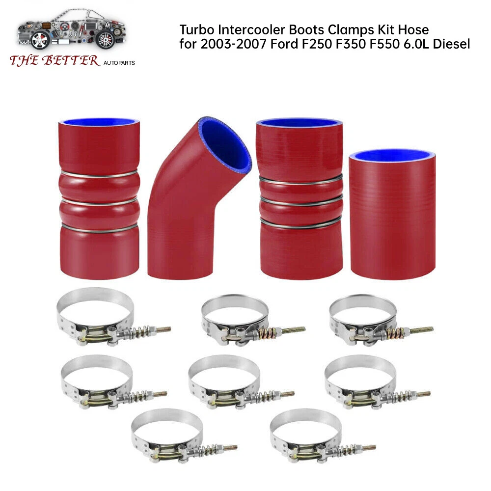 Turbo Intercooler kit Pipe Boot CAC Fits For Ford 6.0L 03-07 F250 F350 F450 F550 Description: An intercooler is any mechanical device used to cool a fluid, including liquids or gases, between stages of a multi-stage compression process, typically a heat exchanger that removes waste heat in a gas compressor. It is used in automotive as an air-to-air or air-to-liquid cooler for forced induction (turbocharged or supercharged) internal combustion engines to improve their volumetric efficiency by increasing intake air charge density through nearly isobaric (constant pressure) cooling. Turbo intercooler boots Kit are used for car turbine intercooler system connection, car intake system connection, car cooling system water tank engine connection, pressure relief valve connection, variable exhaust connection. Specifications: Product Type: Turbo intercooler Main Material: Stainless steel, silicone Multi-layer: 5-Ply reinforced high temperature Hump tube inner diameter 76-83mm and 76mm Straight pipe 76mm Elbow Pipe 63mm The bend is about 35 degrees Color : Black/Red Temperature resistance: -40 to 250℃ high temperature silicone hose Designed to withstand over 100 PSI. Compatibility: 1994-2002 Dodge RAM 2500 / 3500 12 & 24 VAVLE TURBO DIESEL 2003-2007 Fit for Ford F-250 SUPER DUTY 6.0L 363ci OHV V8 DIESEL TURBO 2003-2007 Fit for Ford F-350 SUPER DUTY 6.0L 363ci OHV V8 DIESEL TURBO 2004-2007 Fit for Ford F-450 SUPER DUTY 6.0L 363ci OHV V8 DIESEL TURBO 2003-2007Fit for Ford F-550 SUPER DUTY 6.0L 363ci OHV V8 DIESEL TURBO 2003-2005 Fit for Ford EXCURSION 6.0L 363ci OHV V8 DIESEL TURBO Only Fits 6.0L Turbo Diesel Engine. What You Get: 4 x Replacement Silicone Boots 8 x T-bolt Clamps Note: 1. If you has any problem, please feel free to contact us. 2. Please let us know before you send us the neutral/negative feedback that wont help to finish the issues. And I will definitely try my best to provide the best solutions which would meet your satisfactory. Payment Delivery details Terms of sales About us Contact us Payment 1.Payment must be received within 11 days after winning the item,UPI (Unpaid Item Case) will be filed automatically if buyers fail to make the payment in 11 days after item ends. 2.If you have difficulty paying for the item, please email us to cancel the order. Delivery details 1. Items will be sent out in 48 hours on payment received from Monday to Friday. Orders during weekends and holidays will be posted in the following working day. 2. Please make sure your shipping address and the order information is correct before placing an order. We will not be responsible for item loss due to wrong or unknown address. 3. Products will be shipped from NJ/CA via USPS/UPS/Fedex/DHL. Shipping time is usually 2-7 business days (except Saturday and Sunday.) If you need the item urgently, please contact us for details before you buy. Terms of sales 1.We accept 30 days return/refund guarantee. 2.If the item you received is faulty, damaged or incorrect, or any further problems, you can return it for replacement or refund, please contact our customer service on eBay within 30 days from item received. 3.For damaged items on arrival, please contact us first, sending us an email with a photo is preferred. We will offer solutions to such cases. Full refund or replacement will be guaranteed. About us Welcome to thebetterautopartszone We are specialized in auto accessories for more than 8 years and we have been exporting all kinds of items concerning the auto-parts that come with high quality & best price & excellent after-sales service! Thank you for shppping at our eBay store. Contact us 1.Please contact us first if you have any questions such as product damaged, item not arrived, wrong item sent and item does not work. All those issues would be solved immediately with your satisfactory! 2. Please contact us first before you left us a negative/neutral feedback and we are pleased to solve the problems you met. 3.Please feel free to contact us if you have any problems and we would always be here for your need . Manufacturer Warranty TB Other Part Number TB35241 Fitment Type Direct Replacement Performance Part Yes Country/Region of Manufacture China Universal Fitment Yes Interchange Part Number PO-48 Placement on Vehicle Left Manufacturer Part Number PO-48 Brand TB Color Red/Blue Type Turbo Intercooler Items Included Clamps, Hoses, T-Bolts