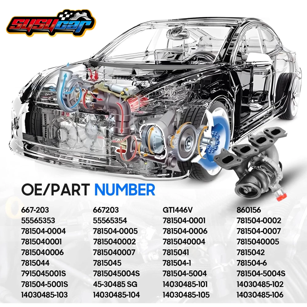 WHY OUR CUSTOMERS KEEP SHOPNG WITH US ✅All items are covered by manufacturer warranty. ✅FAST FREE SHIPPING. ✅Most orders ship within 1 business day with Tracking Number. Customer also can choose two-day or expedited shipping. ✅100% customer satisfaction is backed by a 30-Day Money Back Guarantee for New items and a 30-Day Money Back Guarantee for Recon. FEATURES 1 Manufactured with Precision to Meet OE Standards IATF16949 Certified. 2 High Quality & Brand New 3 Two Year Warranty. 4 After Market Replacement 5 Customers Service Center Will Deal with Pre-sale and After-sale Problems In Time Turbo Turbocharger Kit for Chevy Chevrolet Cruze Buick Encore Sonic Trax 1.4L L4 WHY OUR CUSTOMERS KEEP SHOPNG WITH US ✅All items are covered by manufacturer warranty. ✅FAST FREE SHIPPING. ✅Most orders ship within 1 business day with Tracking Number. Customer also can choose two-day or expedited shipping. ✅100% customer satisfaction is backed by a 30-Day Money Back Guarantee for New items and a 30-Day Money Back Guarantee for Recon. FEATURES 1 Manufactured with Precision to Meet OE Standards IATF16949 Certified. 2 High Quality & Brand New 3 Two Year Warranty. 4 After Market Replacement 5 Customers Service Center Will Deal with Pre-sale and After-sale Problems In Time 6 Factory Affordable Price with High Quality Service: Return/ Replace/ Offer Technical Support. FITMENTS Compatible with Chevy Chevrolet Cruze 2011-2015 1.4L; Compatible with Chevrolet Sonic 2012-2020 1.4L; Compatible with Chevrolet Trax 2013-2021 1.4L; Compatible with Buick Encore 2013-2021 1.4L Gas VVT Turbocharged Ecotec LUV OEM NUMBER 667-203, 667203, GT1446V, 860156, 55565353, 55565354, 781504-0001, 781504-0002, 781504-0004, 781504-0005, 781504-0006, 781504-0007, 7815040001, 7815040002, 7815040004, 7815040005, 7815040006, 7815040007, 7815041, 7815042, 7815044, 7815045, 781504-1, 781504-6, 7815045001S, 7815045004S, 781504-5004, 781504-5004S, 781504-5001S, 40-30485 SG, 14030485-101, 14030485-102, 14030485-103, 14030485-104, 14030485-105, 14030485-106 ITEM INCLUDES Turbo Turbocharger Kit with Gasket FREE RETURN If you are unhappy with your purchase for any reason, you can return it to us in an un-used condition in the original packaging within 30 days of purchase and we'll give you a refund or exchange. The refund/Exchange will not include postage/eBay costs. Please note you MUST contact us to obtain a Return Authorization Number before returning any part. Any parcel without the Return Authorization Number will be rejected *If your item is faulty or was incorrect, you must contact our sales representative before returning the parcel and we will endeavour to solve the problem effectively. Video or picture is required to show the item 、condition before we issue the Return Authorization Number. * Professional installation is highly recommended (No Instruction Included) * For any needs please contact us Item Specifics Brand : susucar Type : Turbocharger OE/OEM Part Number : 667-203, 667203, GT1446V, 860156, 55565353, 55565354 Interchange Part Number : 781504-0001, 781504-0002, 781504-0004, 781504-0005, 781504-0006 Superseded Part Number : 781504-0007, 7815040001, 7815040002, 7815040004, 7815040005 Compatible Makes : Chevrolet ,Buick Compatible Models : Chevrolet Cruze,Sonic ,Trax ; Buick Encore Compatible Years : 2011-2021 Compatible Engine : 1.4L L4 Material : high-strength aluminum and iron Items Included : Turbo Turbocharger Kit with Gasket Package Dimensions : 14.3 x 12.1 x 10.4 inches Item Weight : 18.11 pounds Manufacturer Warranty : 2 Years Fitment Type : Direct Replacement OE Spec or Performance/Custom : OE Spec About My Store : 100% SATISFACTION, 100% Source manufacturer Manufacturer : SUSUCARpartsWhosale Note : Please contact us to confirm the application before Purchase other part number 1 : 7815040006, 7815040007, 7815041, 7815042, 7815044, 7815045 other part number 2 : 781504-1, 781504-6, 7815045001S, 7815045004S, 781504-5004 other part number 3 : 781504-5004S, 781504-5001S, 40-30485 SG, 14030485-101 other part number 4 : 14030485-102, 14030485-103, 14030485-104, 14030485-105 Why choose US? Susucar is passionate about maintaining our culture of demonstrating value and building personal client relationships in perfecting the client experience. We are also a culture of giving back to the community and preserving our precious planet - a passion that runs deep throughout our Company. Every single item we sell goes through thorough inspection processes to make sure it works perfectly for you. If for any reason you are not satisfied with our product, please shoot us a message. We will do everything in our power to make things right Returns and Exchanges Hassle Free Returns! All our new and refurbished products come with a 30-Day Free Return Policy. If you would like to return your item and you are within 30 days of the purchase, and it is still in its original condition, you can request a return label and return the item by contacting us through eBay messaging. We offer Free Returns in the USA and will provide you with a prepaid return label. Once the item has been received and verified, a refund of the purchase price and any taxes paid will be issued. Shipping & Payment Policy Ground Shipping is always Free within the US (48 contiguous states)! Once payment is received, your order will be processed and shipped the same or next business day. A tracking number will be provided on all orders. Please note that we can only ship to addresses verified with PayPal. We may contact you for additional verification if needed. We cannot ship to APO or FPO addresses, and orders to Puerto Rico, Hawaii, and Alaska will incur additional shipping charges. For your safety and convenience, we process all payments through PayPal where all major Credit Cards are accepted (Amex, Visa, MasterCard, Discover, etc.). We unfortunately cannot accept payments from accounts located outside of the US and Canada. For "Buy It Now" listings, your PayPa