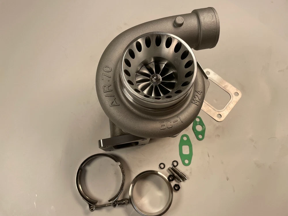 Turbo model T4R-22 Upgrade 11 billet compressor wheel bearing type:Single Ball Bearing cooled type:water and oil cooled Compressor details a/r 0.70 anti-surge air inlet 4" air outlet 2.5" inducer 61.40mm exducer 82.00mm Turbine details a/r .96 turbine housing flange:T4 Exhaust outlet:3.00 inch V-band inducer 74.10mm exducer 64.50mm ****************Very Important Points******************* 1.Please make sure to open the box immediately when taking delivery, to avoid any potential issues Do NOT sign for any damaged package and report it to the couriers immediately, let the couriers sign for damage, then Contact us please! We will work with the couriers to solve shipping issues.
