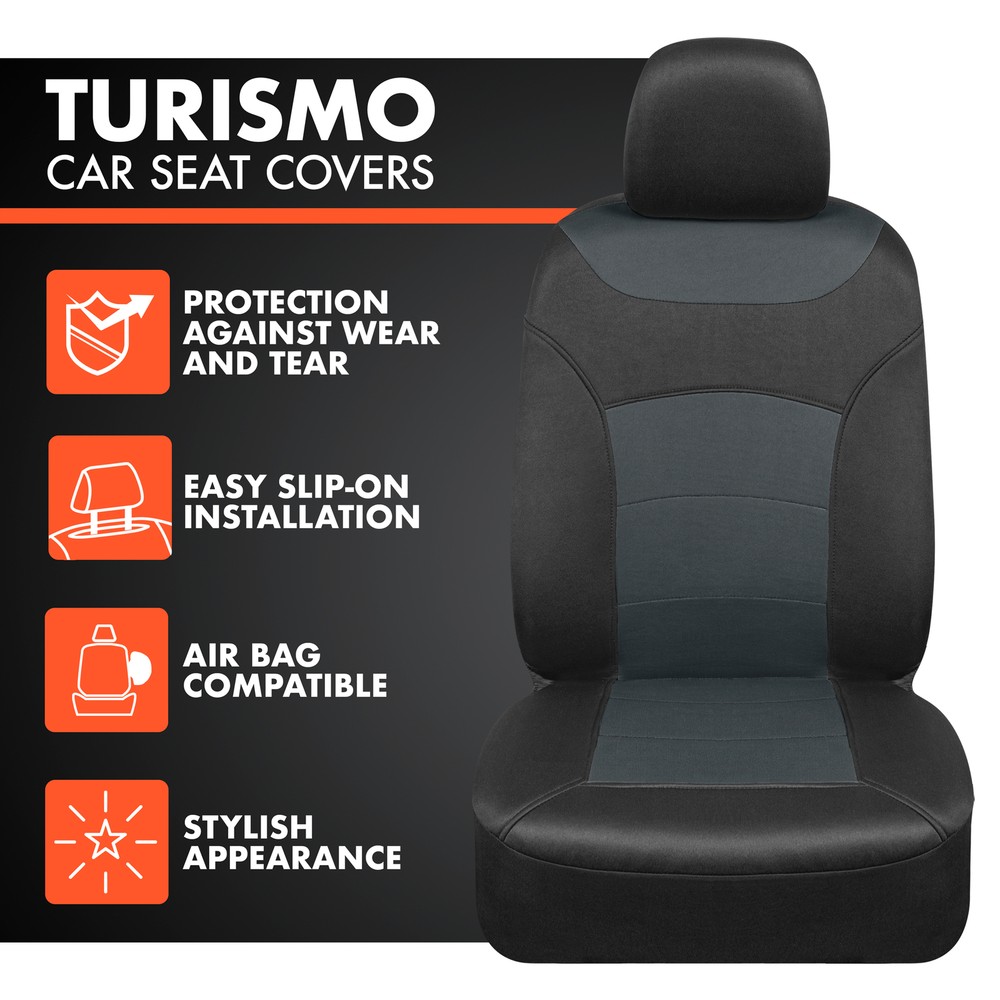 Follow us on social media floor mats seat covers car covers hub caps FREE SHIPPING IN ALL 48 CONTIGOUS STATES FREE RETURNS FREE 30 DAY RETURN POLICY DAILY UPDATES WE BRING THE LATEST ITEMS SUPPORT 24/7 Contact us via ebay Turismo Car Seat Covers Full Set Front & Rear Bench for Auto Truck SUV Gray DESCRIPTION Ultra-Comfort - Machine Washable Polyester Cloth with Foam Backing Universal Dimensions - Fits Most Sedans, SUVs, Vans & Trucks (Please Check the Fitment Chart) Easy Installation - Simple Slip-On Install - Takes Only a Few Mins - Make Incisions for Seat Belt as Instructed Reinforced with foam padding Perfect Present - Makes an Excellent Gift for Family and Friends; Great for Families and Pet Owners Total Protection - Guard Against Dirt, Spills & Messes Add A Layer of Comfort & Protection - Package Includes Seat Covers for Front Driver & Passenger Seats, Rear Bench Cover. Premium PolyCloth Material - Feels Like Neoprene. Made for seats w/ Detachable Headrests. Double Stitched Seams - Toughest, Durable & Long Lasting. 100% Washable - Breathable Cloth Prevents Odors and Dirt Build Up. WARRANTY INFO Free 365 Days Buyer Protection Program Our team works hard for you. Because we have such great relationships with our vendors and manufacturers, we also would like to pass on some of the benefits that we have as a retailer back to our valued customers in the form of warranty and buyer-protection program. Items in the categories of Automotive Accessories are covered by our 365 days buyer-protection program. However any perishable goods such as Airfreshner and etc. are not covered. If you need more information regarding warranty or have any question, please contact us anytime! SHIPPING INFO TERMS & CONDITIONS RETURNS INFO Coast to Coast Shipping From CA and NJ Warehouses We Ship from our two major warehouses in California and New Jersey Since we have multiple warehouse unlike others, we can ship the items faster! Any orders destined for HI, PR, AK and non-contiguous US states will incur small extra cost. 1 Day Business Day Processing Time Guarantee All orders are processed within 1 business day. Any express, changes, or cancellations must be received before 8AM PST. However we cannot guarantee changes after the mentioned cutoff time. Each orders will be shipped from our closest distribution center. All changes and cancellations must be received before 8AM PST. We are not responsible for shipping fee if buyer decided to ship the item using their own carrier. 100% FREE RETURNS WITHIN 30 DAYS* To ensure highest customer satisfaction, we provide 100% free return service! If the product different from what we have described? Return it! If the size is or fitment guide is wrong? Return it! In case you are not satisfied or have any kind of question, please call or email us and let us help you. *For all International order buyers are responsible for returning the package TIPS TO ENSURE THAT YOU ITEM and SHIPPING IS CORRECT Please always verify the address during checkout When paying with PAYPAL, please ensure that the shipping address on paypal is the desired address. Please ensure that the item matches your desired fitment EASY 3-STEPS RETURN PROCEDURE Fill out Return Materials Authorization form (We will send it to you) Attach the original invoice Return the item with RMA and original invoice CAUTION: We cannot re-route shipments with INCORRECT Address. Buyer is responsible to re-route or obtain package. We are not responsible for wrong ordering color, size, incorrect or invalid address, phone # or email NOTE: If you are reporting loss package, please contact your respective local USPS or UPS office. If you have any other questions or concerns, please Send us eBay message WARNING: This product contains chemicals known to the State of California to cause cancer and birth defects or other reproductive harm Return is allowed except for the following reasons: Used or damaged goods (due to use) cannot be returned Wrong address Incorrect or invalid quantity entered Invalid address or unmatching information The following items must be included when returning: Package or item must be in original condition and must be used. Must be within contiguous 48 US States Must provide a valid reason for return Your shipping name must be the same or a verified buyer Valid contact information such as phone, address, name, payment method Must be submitted within 30 days of the purchase of the item A valid RMA# must be accompanied with every return Exclusive Automotive Accessories Your One-Stop Shop for the Best in Auto Accessories. Seat Covers, Floor Mats for Cars, Trucks, Vans & SUVs available in hundreds of varieties of patterns, styles and materials.