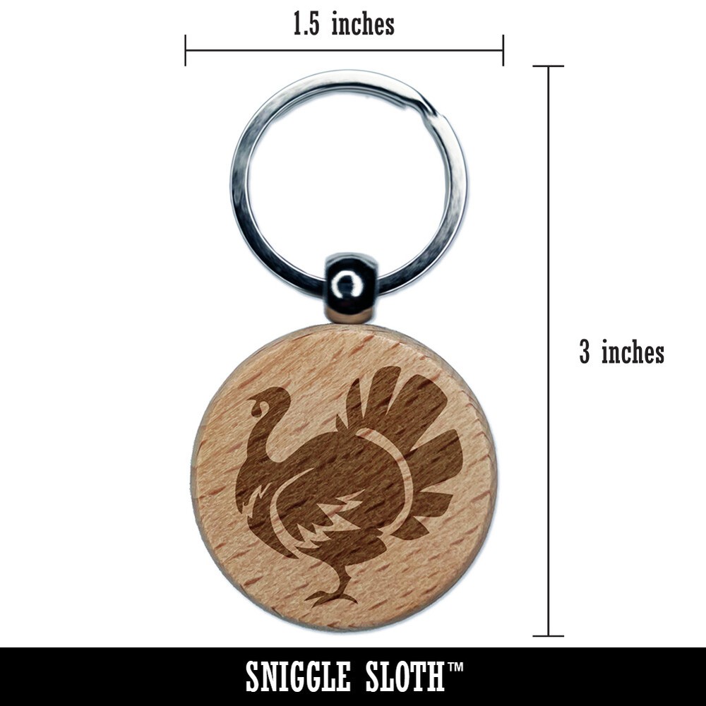 Turkey Shaped Thanksgiving Wood Keychain with Engraved Design