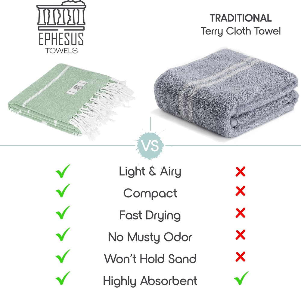 Our Turkish beach towel is much thinner than standard towels and takes up very little space in your bag. Thus, it offers a very practical solution during your travels. Say goodbye to damp towels! This quick-drying design saves you time and energy in the laundry. Also, a simple shake removes the sand. Our towels are pre-washed and Made in Turkey. This isn't just a beach towel! Use it as a yoga mat, picnic blanket, cozy wrap, or stylish cover-up. With a lot of vibrant colors to choose from, find the perfect one to match your personality. The Gift of Relaxation: Surprise your loved ones with the Turksh Beach Towels. Our Turkish beach towels make fantastic birthday, housewarming, or any occasion gifts for men and women who appreciate style. Product Description The video showcases the product in use. The video guides you through product setup. The video compares multiple products. The video shows the product being unpacked. Our Other Products Add to Cart Customer Reviews 4.4 out of 5 stars 2,404 5.0 out of 5 stars 5 4.4 out of 5 stars 2,404 4.1 out of 5 stars 1,875 4.1 out of 5 stars 1,875 4.1 out of 5 stars 1,875 Price $12.90 $ 12 . 90 — — — — — Element Cotton Polyester Blend Cotton Polyester Blend Cotton Polyester Blend Cotton Polyester Blend Cotton Polyester Blend Cotton Polyester Blend Design Sultan Herringbone Diamond Sultan Herringbone Diamond Dimension 38 x 70 inch 36 x 70 inch 36 x 70 inch 18 x 30 inch 18 x 30 inch 18 x 30 inch Absorbency High High High High High High Dry time Fast Fast Fast Fast Fast Fast Number of Items in Package 1 1 1 2 2 2 Color Variations 30 30 30 30 30 30 Areas of Use Beach & Pool & Bathroom Beach & Pool & Bathroom Beach & Pool & Bathroom Kitchen & Bathroom & Gym Kitchen & Bathroom & Gym Kitchen & Bathroom & Gym Wonderful Present ✔ ✔ ✔ ✔ ✔ ✔ Pre-laundered ✔ ✔ ✔ ✔ ✔ ✔ Drying machine ✔ ✔ ✔ ✔ ✔ ✔ Can Be Ironed ✔ ✔ ✔ ✔ ✔ ✔
