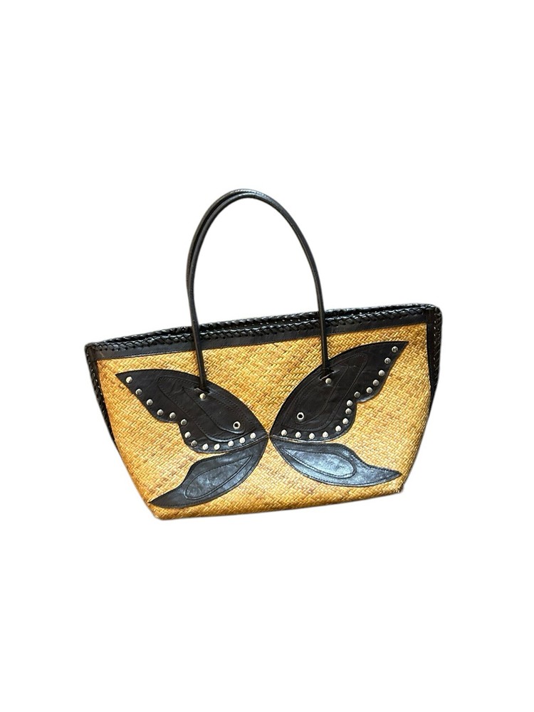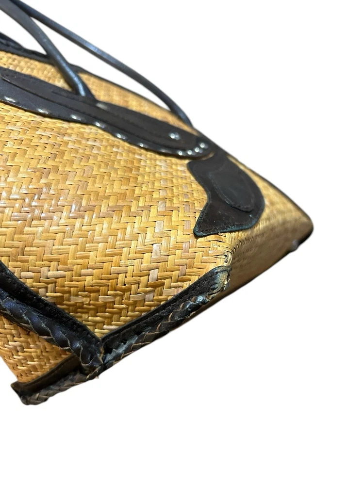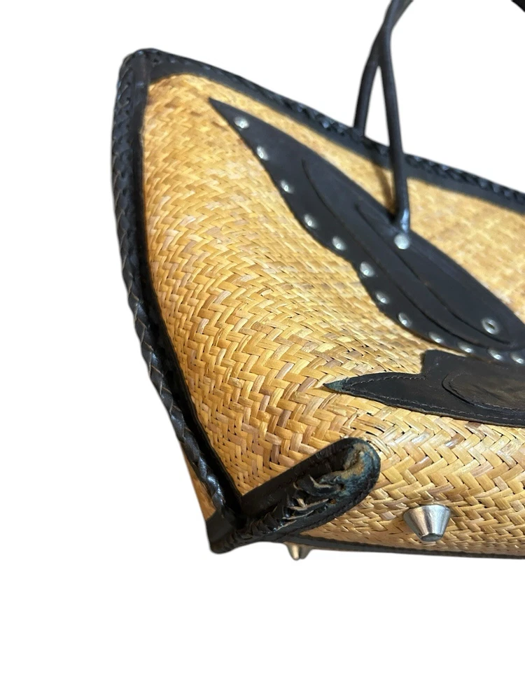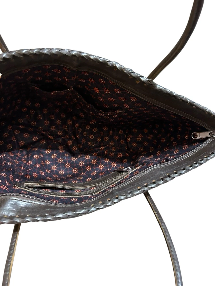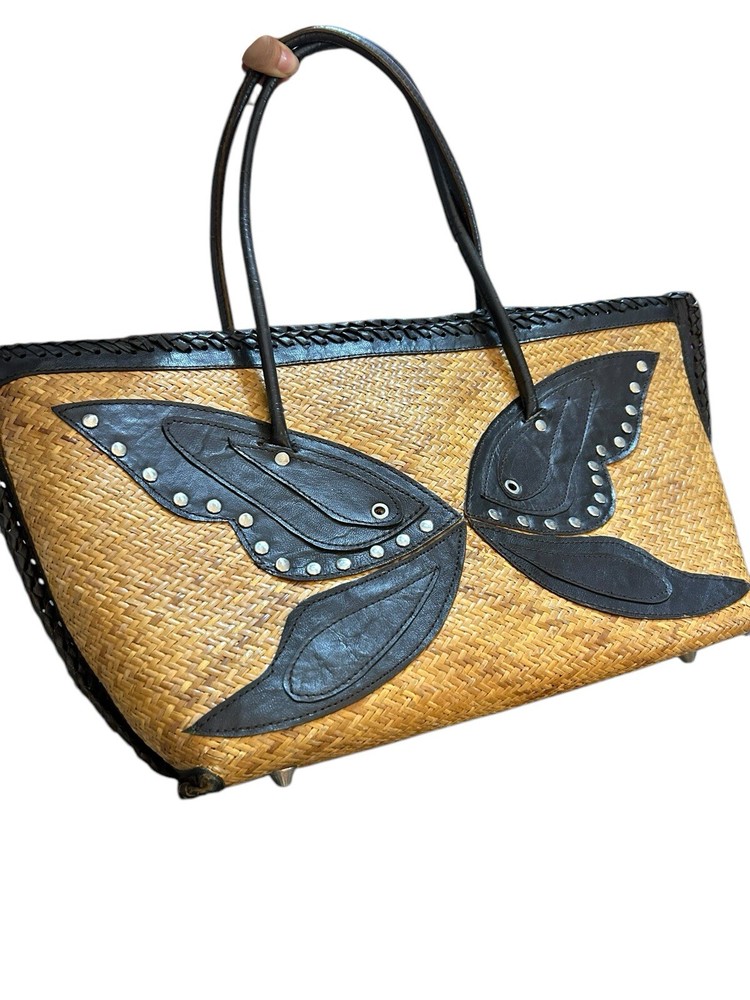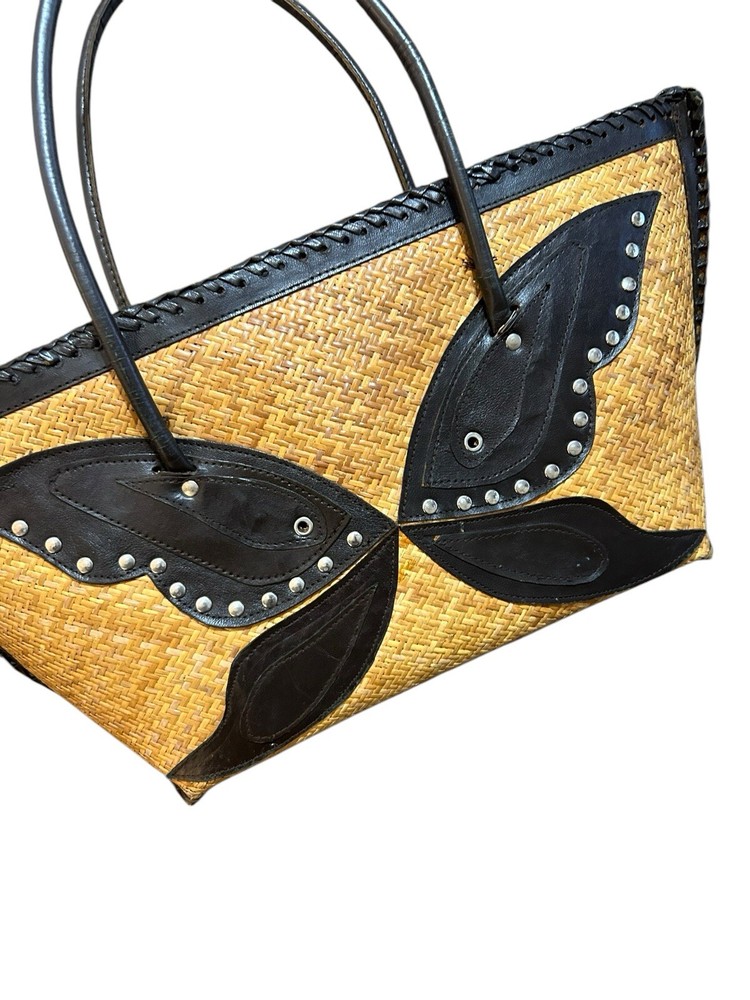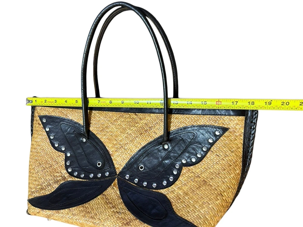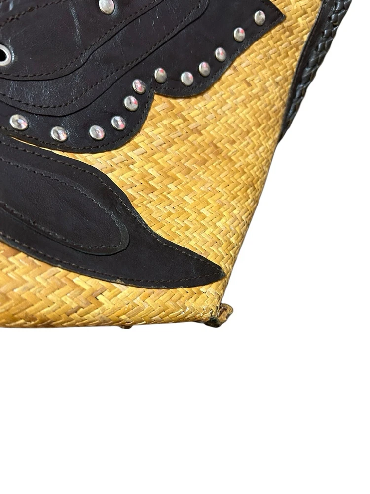Turkish Woven Faux Leather Butterfly Shoulder Bag 18” X 9 Boho Studded Tan Brown Good used condition. Normal signs of wear and tear, some scuffs and scratches. Wear on the corners, one of the corner’s detail has some loose stitching. Please study pictures carefully before purchasing Feel free to ask any questions. Thank you for visiting our store! rck