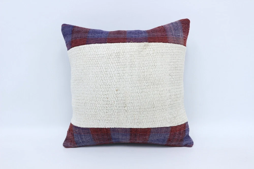 Turkish Kilim Pillow, 16"x16" White Kilim Pillow, Throw Pillow Covers
