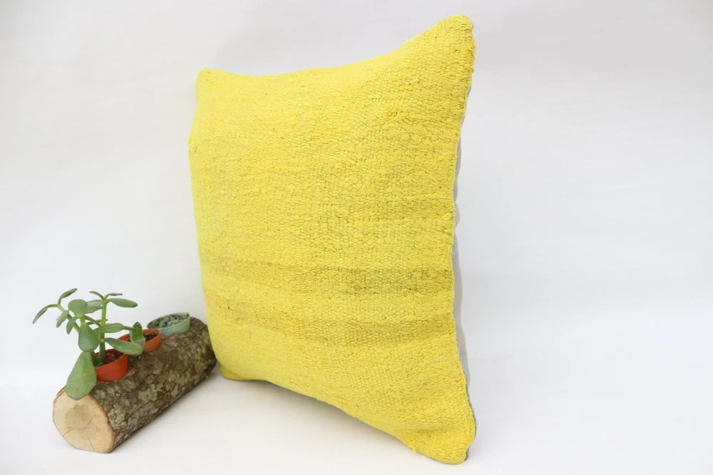 Turkish Kilim Pillow, 16"x16" Yellow Kilim Pillow, Kilim Pillow Covers