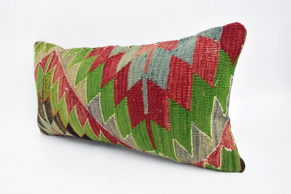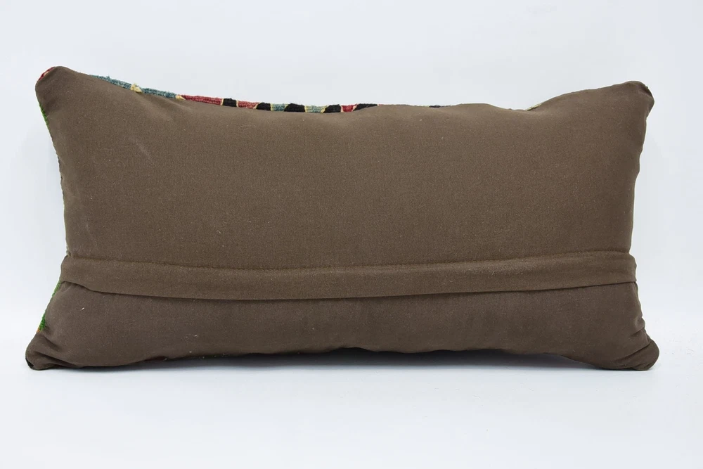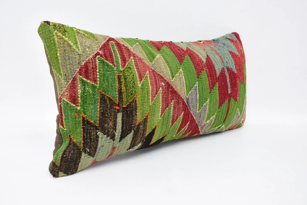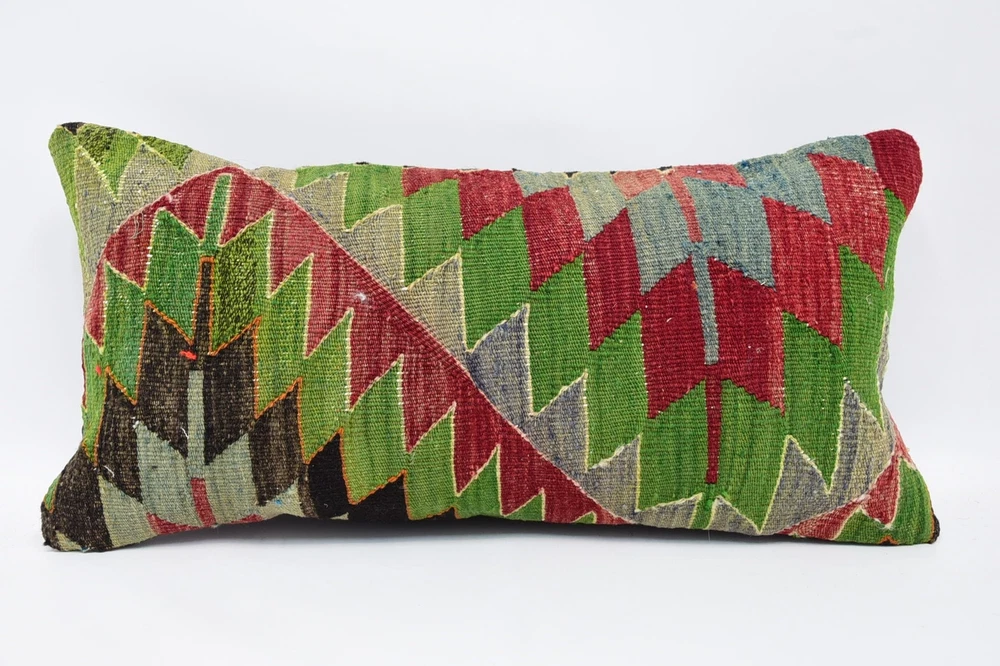Turkish Kilim Pillow, Personalized Pillow, 12"x24" Green Kilim Pillow