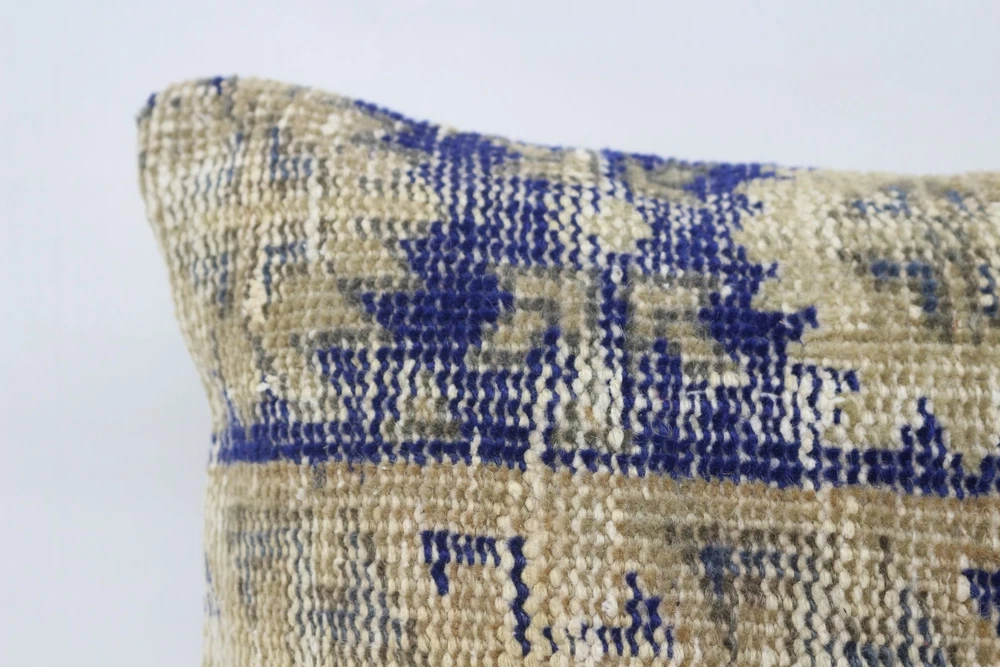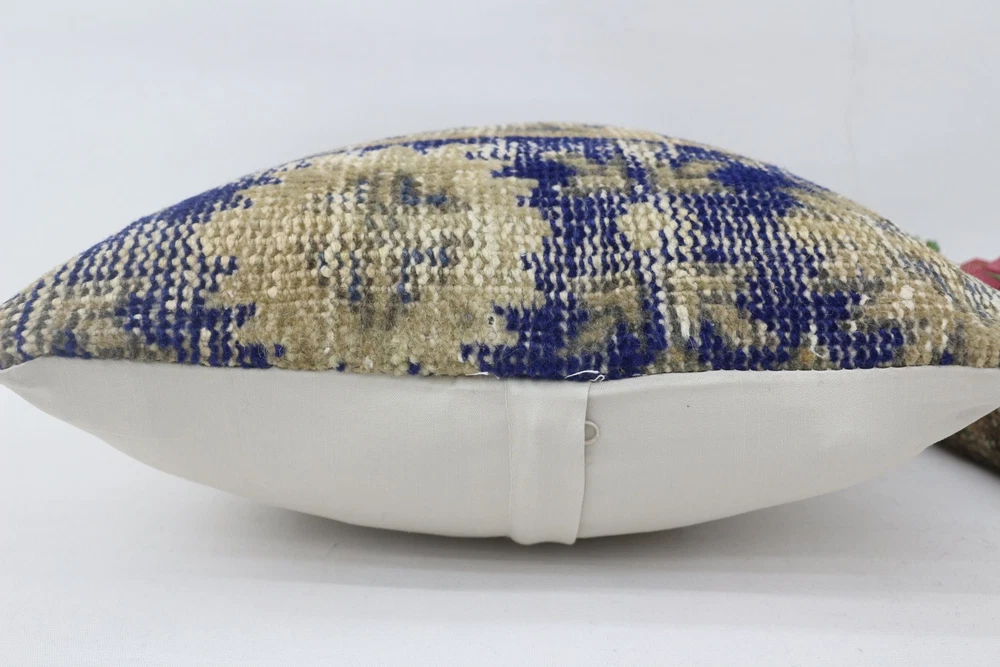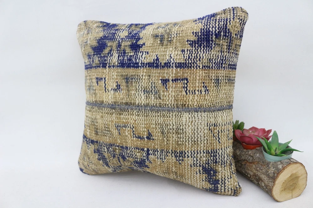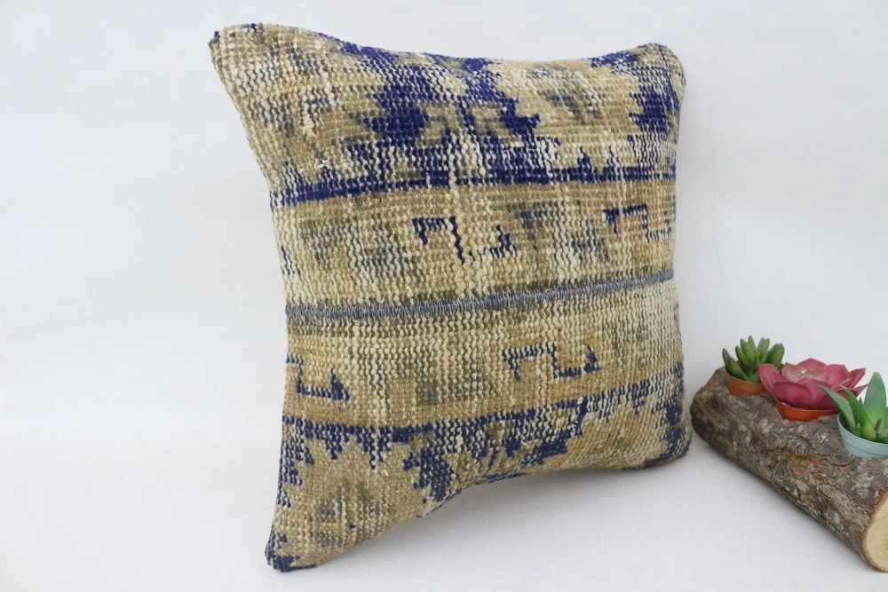 Turkish Pillow, Boho Pillow Sham Cover, Antique Pillows, 14"x14" Blue Pillow