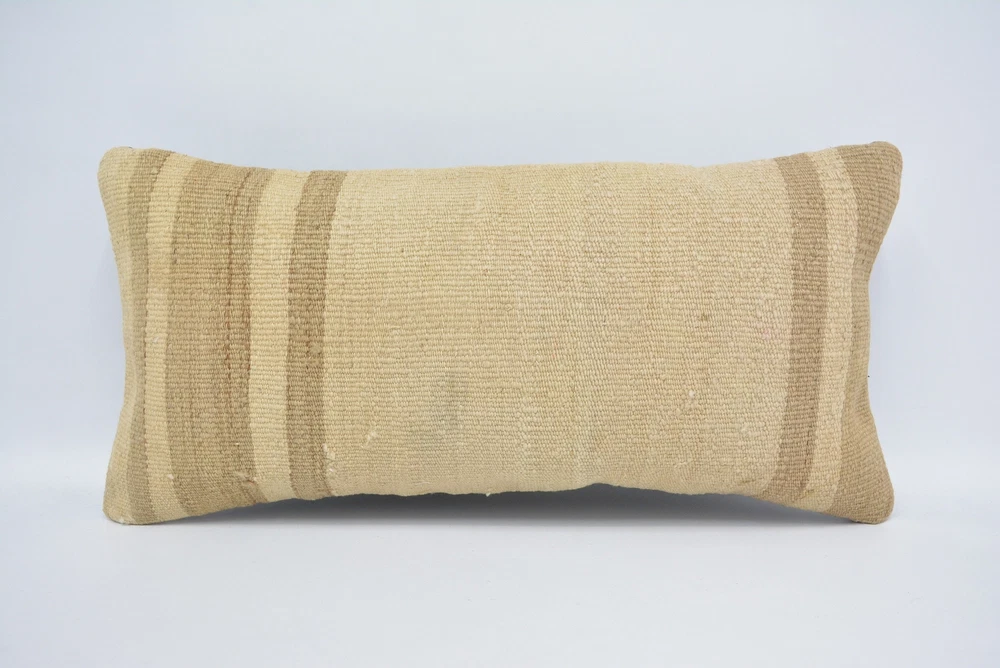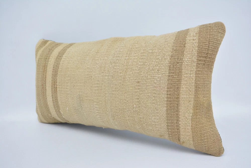 Turkish Pillow, Pillow for Couch, 12"x24" Beige Cushion Case, Designer Pillows
