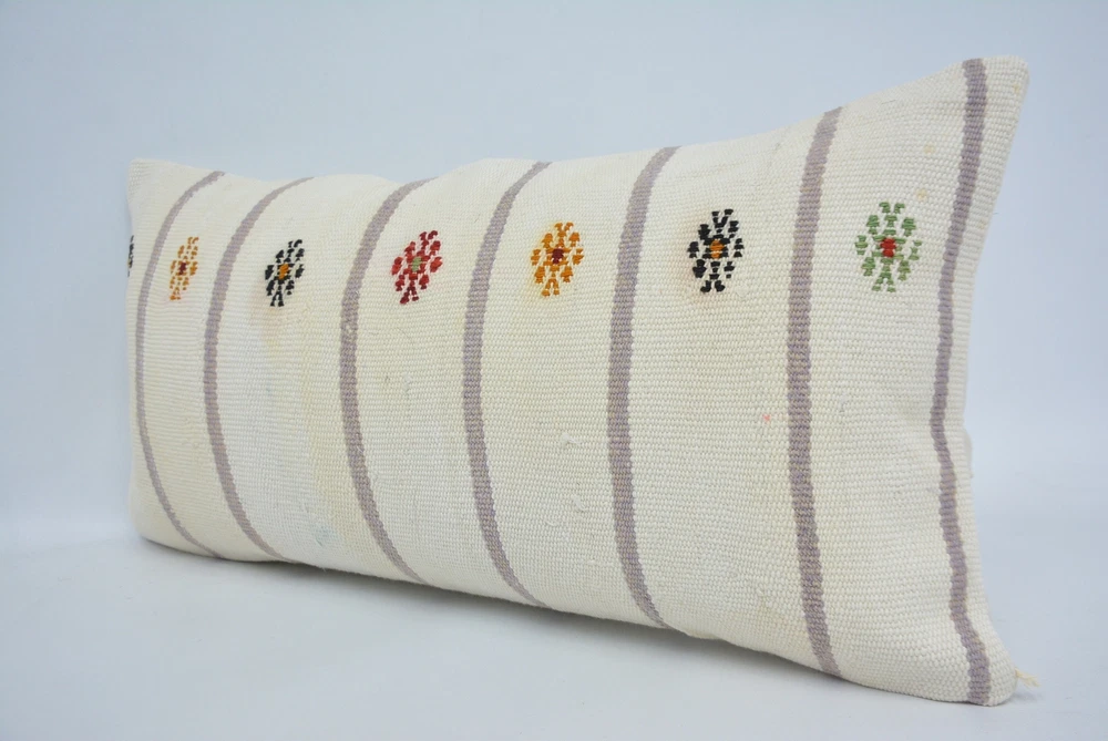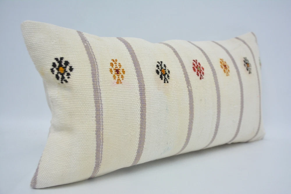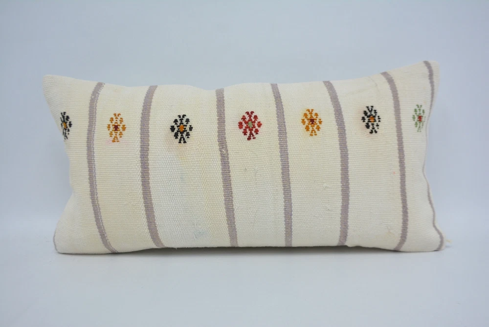 Turkish Pillow, Pillow for Couch, 12"x24" White Cushion Case