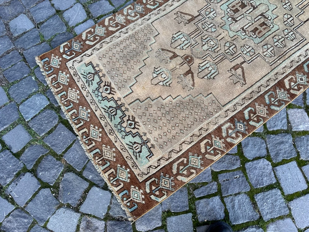 Bohemian rugs, Runner rug, Handmade, Turkish rug, Vintage, Wool | 2,9 x 12,0 ft