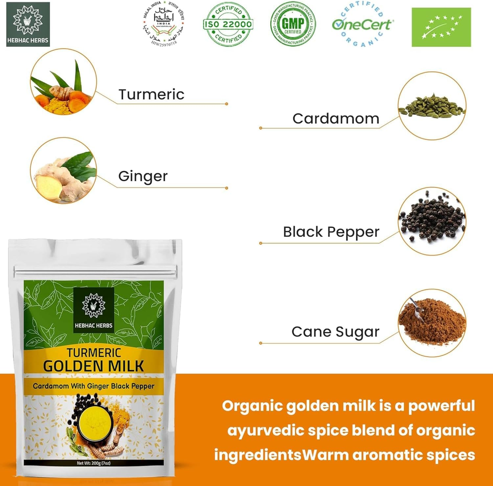 Store New Arrivals Add to Favorite View Feedback Contact Fast deliveries to the customer's home Quality customer service John Make the customers happy! Turmeric Golden Milk Powder - 200G, Blend of Turmeric, Black Pepper, Ginger, Cardamom, and Cane Sugar by Hebhac Herbals Description Made with a premium mix of turmeric, ginger, cardamom, black pepper, curcumin, and cane sugar. Hebhac Herb Turmeric Golden Milk Mix Powder is an organic blend of turmeric, ginger, cardamom, black pepper, curcumin, and cane sugar. Made with fresh, premium organic ingredients, this blend offers a delightful aroma with hints of orange and ginger. It’s perfect for creating a warm, flavorful golden milk latte or adding a unique touch to various recipes. Unit Count 7.0548 Ounce Primary Supplement Type Vitamin B12 Number of Items 1 Country of Origin India Special Ingredients Turmeric Age Range (Description) Adult Diet Type Vegetarian Package Information Jar Flavor Turmeric Item Form Powder Package Dimensions 9.25 x 6.1 x 1.89 inches; 1.06 Pounds ABOUT US We offer the best prices around on high quality products. Our E-store includes media such as books, movies, music and games while offering electronics, toys, sporting apparel, clothing, tools, general home, garden items and more. SHIPPING We are always working hard to ensure your package arrives as soon as possible. Please understand that some factors like weather, high postal traffic, and the performance of shipping companies are outside of our control. We offer free shipping to the lower 48 states and ship within 2 business days of payment, usually sooner. We do not accept P.O. Boxes. Please provide a physical address. For shipping outside of the continental USA, we only use eBay's Global Shipping Program. The item is shipped to KY and then sent to the rest of the world. International customers are responsible for all duties and taxes. Continue to 'check out' to calculate costs for shipping the item to your country. Messages regarding eBay's Global Shipping Program MUST be directed at eBay EXCLUSIVELY. RETURNS We offer a 30-Day Return Policy on items in which you are not completely satisfied with. You have the option of a full-refund or an exchange of the item. No returns are available on items shipped outside of the USA PAYMENT We accept PayPal. CONTACT US This page content is yet to come Please ad us to your favorite seller and visit again later Thank You CUSTOMER SATISFACTION We try our very best to make sure every customer is completely satisfied. If there's a problem, message us! We're happy to help. WE ACCEPT