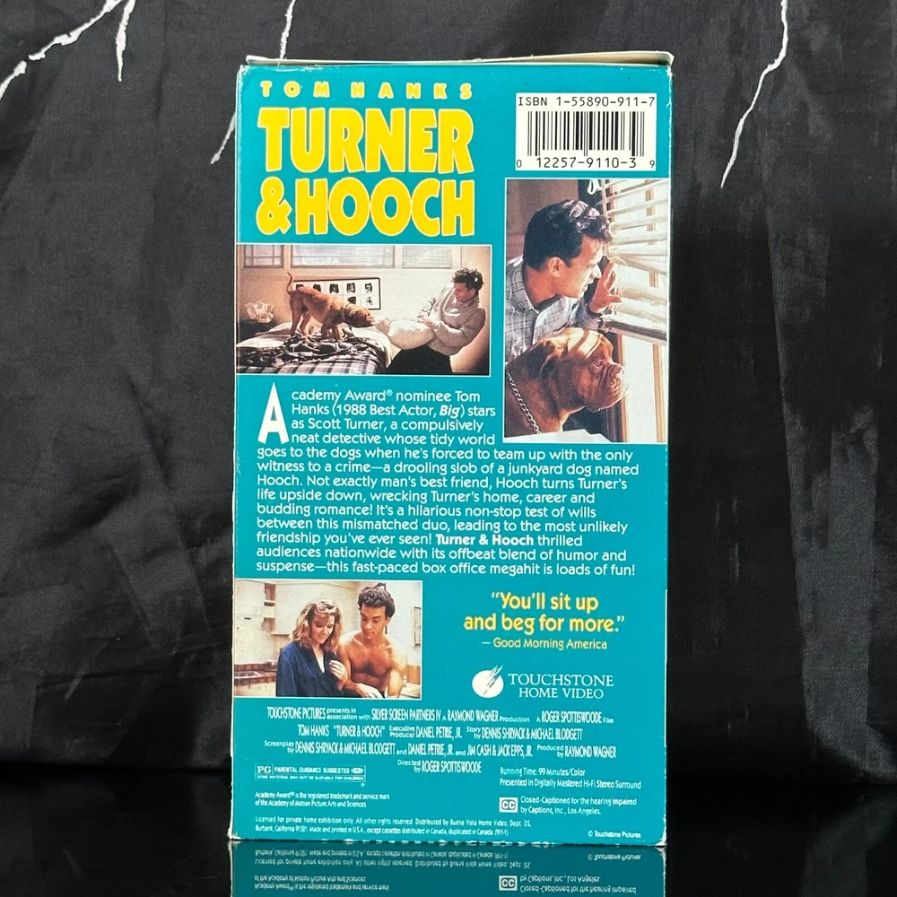 Language: English Signal Standard: NTSC Actor: Tom Hanks Special Features: na Sub-Genre: Buddy Movie/TV Title: Turner & Hooch Studio: Touchstone Home Entertainment Seller Notes: “Read Main Description Provided by Soupy's Retro(:” Edition: Full Screen Rating: G Genre: Comedy Director: Roger Spottiswoode Former Rental: No Country/Region of Manufacture: United States Leading Role: Tom Hanks UPC: 0012257911039 gtin13: 0012257911039
