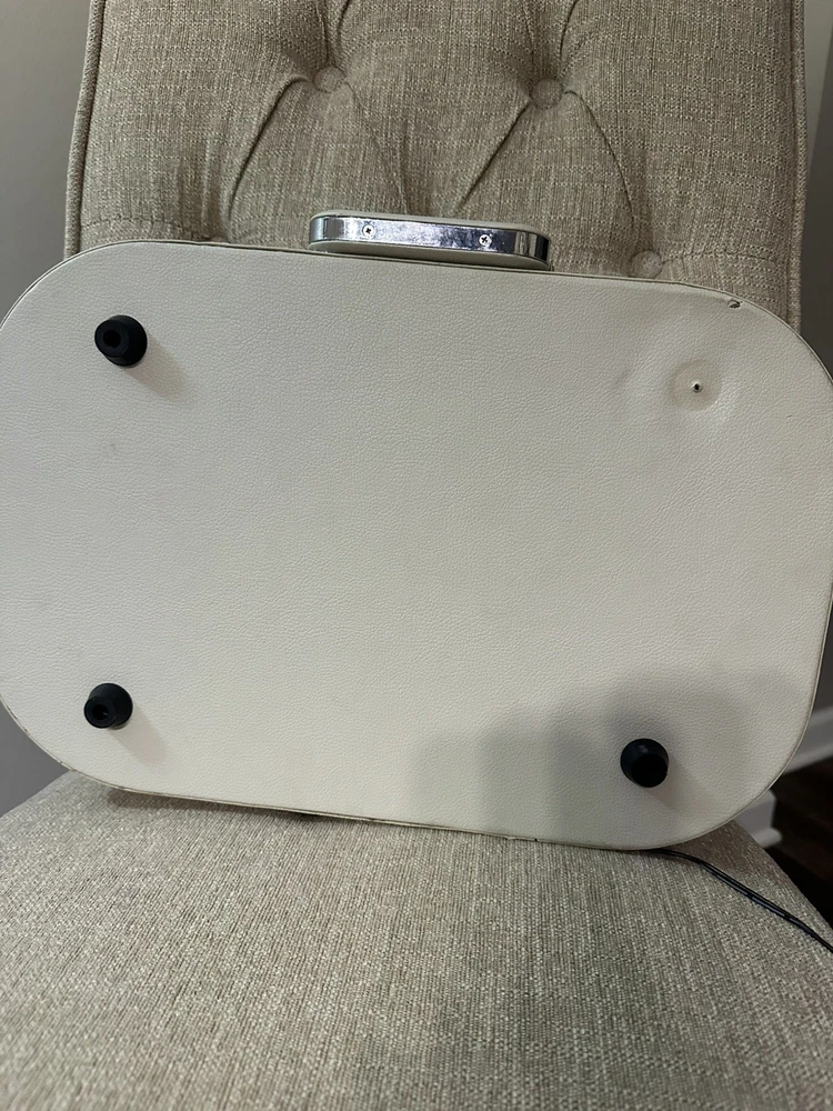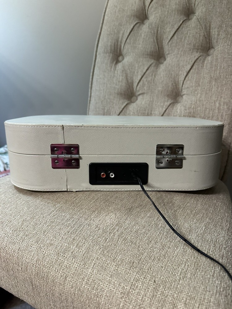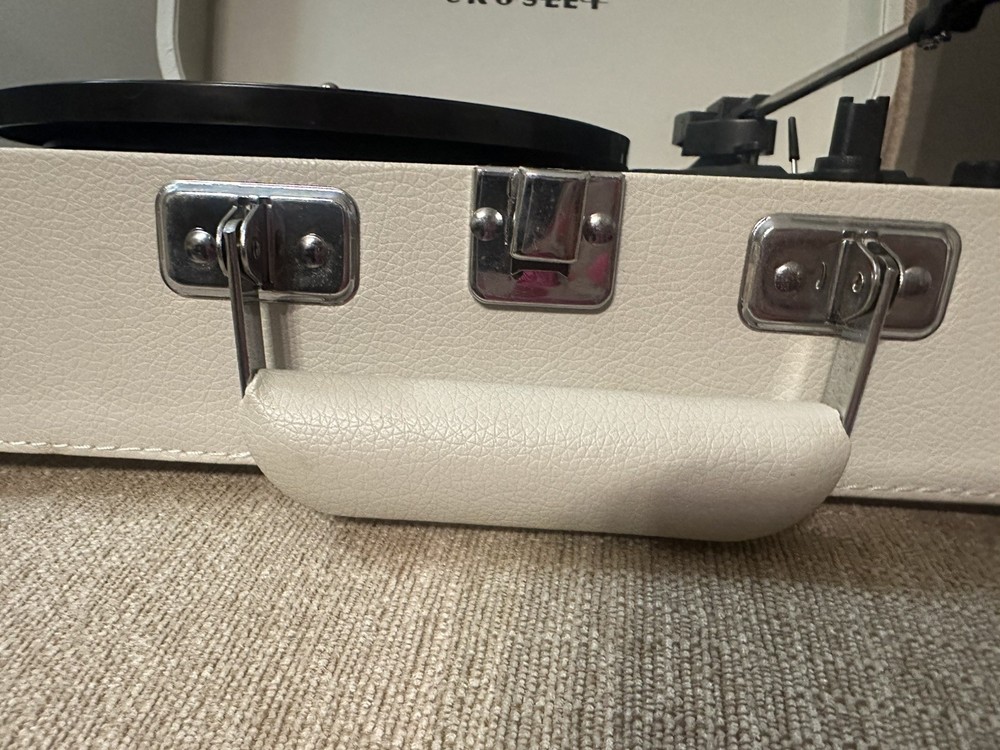 Missing one of the foot peg as shown in picture ( can remove rest for stability or find a peg similar in size). Great condition otherwise and works great. The Crosley CR8009B-DU Discovery Turntable Record Player is a stylish and versatile 2nd generation turntable that features Bluetooth connectivity for added convenience. With a sleek dune color design and a compact size of 10.63" in length, this turntable is perfect for smaller spaces. It includes audio outputs for a headphone jack and stereo RCA, as well as speed settings for 45RPM, 33.3RPM, and 78RPM. The belt drive feature ensures smooth and precise playback of your favorite vinyl records, making it a great addition to any home audio setup.