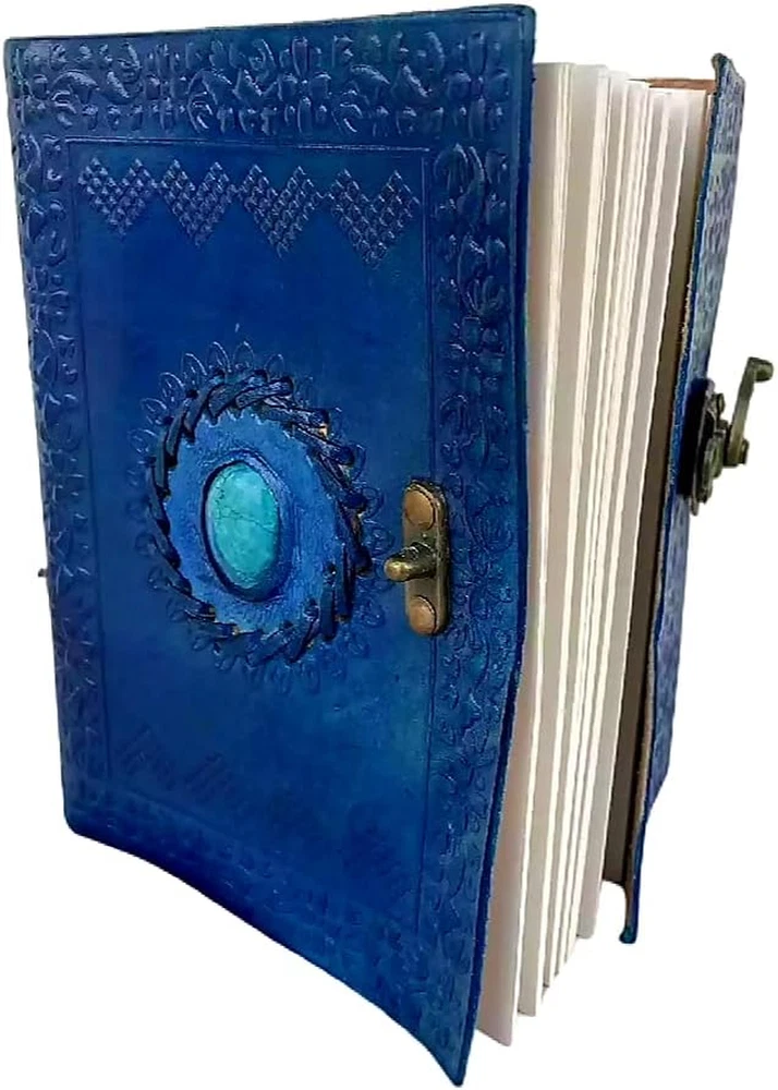 Store New Arrivals Add to Favorite View Feedback Leather Journal with Unlined Pages - Turquoise Blue Stone Leather Bound Writing Journal for Women & Men Medieval Gemstone Studded Handmade Notebook Office Poetry Sketch Book Handcraft Paper Stone Description Item model number AH8912 Package Dimensions 7.13 x 5.31 x 1.42 inches Style Medieval Number of Items 1 Color Turquoise blue stone diary Pages 100 Cover Material Leather Material Type leather Sheet Size 5-x-8-inch inches Manufacturer Part Number AH8912 Item Weight 12 ounces Theme Book Ruling Plain Ruling Type Plain Manufacturer Aish Handicraftaro Special Feature Lock Brand aish handicraftaro Size 7 x 5 inches Turquoise Blue Stone Leather Bound Writing Journal for Women & Men medieval Gemstone Studded Handmade Notebook Office Poetry Sketch Book Handcraft Paper Stone Diary Book of Shadows Leather Grimoire Blank Book Journal wiccan Witches Journal (BLUE) Dimensions: Length - 7 inches x Width - 5 inches Handcrafted out of the finest quality of leather Comes with a front and back floral design, a metal lock & 100 pages of unruled handmade papers Highly durable & functional. this decorative record book can be used for writing, noting & jotting, sketching, doodling or recording personal as well as professional activities Handcrafted to perfection by the artisans of Rajasthan, India Safety and Precautions The journal is made of leather and drawing papers which should be protected from water. Blue Leather Diary Journal Notebook Handcrafted with a Metal Lock & Eco-friendly Pages It's an Eco-friendly handmade leather journal with beautiful cover. It's a refillable lock journal with 100 pages. Every page of this diary will become a gem with your precious memories. Usage: Personal journal, gift for women, gift for men, holiday gift, mother's day gift, father's day gift, birthday gift, Valentine's Day gift, vintage collection. The journal is consisting of handmade Sketch papers (khadi papers). Product Details: Dimensions: Length - 7 inches x Width - 5 inches Handcrafted out of the finest quality of leather Comes with a front and back floral design, a metal lock & 100 pages of unruled handmade papers Highly durable & functional, this decorative record book can be used for writing, noting & jotting, sketching, doodling or recording personal as well as professional activities Handcrafted to perfection by the artisans of Rajasthan, India Safety and Precautions: The journal is made of leather and drawing papers which should be protected from water. ABOUT US We offer the best prices around on high quality products. Our E-store includes media such as books, movies, music and games while offering electronics, toys, sporting apparel, clothing, tools, general home, garden items and more. SHIPPING We are always working hard to ensure your package arrives as soon as possible. Please understand that some factors like weather, high postal traffic, and the performance of shipping companies are outside of our control. We offer free shipping to the lower 48 states and ship within 2 business days of payment, usually sooner. We do not accept P.O. Boxes. Please provide a physical address. RETURNS We offer a 30-Day Return Policy on items which you are not completely satisfied with. You have the option for a full-refund or an exchange of the item. No returns are available on items shipped outside of the USA. PAYMENT We accept PayPal. CONTACT US This page content is yet to come Please ad us to your favorite seller and visit again later Thank You