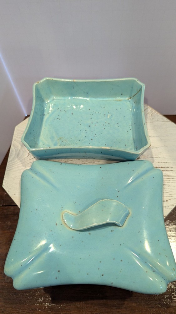 Seller Notes:“crack on inside, pictured”Original/Reproduction:OriginalEngraved:NoMaterial:CeramicRoom:Any RoomCustomized:NoTime Period Manufactured:1950-1959Care Instructions:Clean with Damp ClothShape:RectangleSize:MediumBrand:UnbrandedSuitable For:FurnitureColor:BlueType:Trinket Box