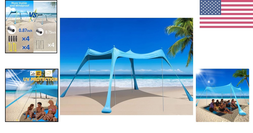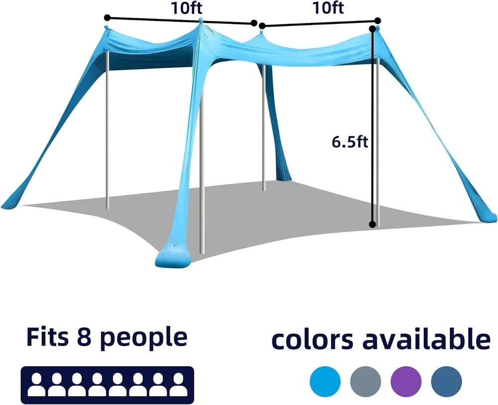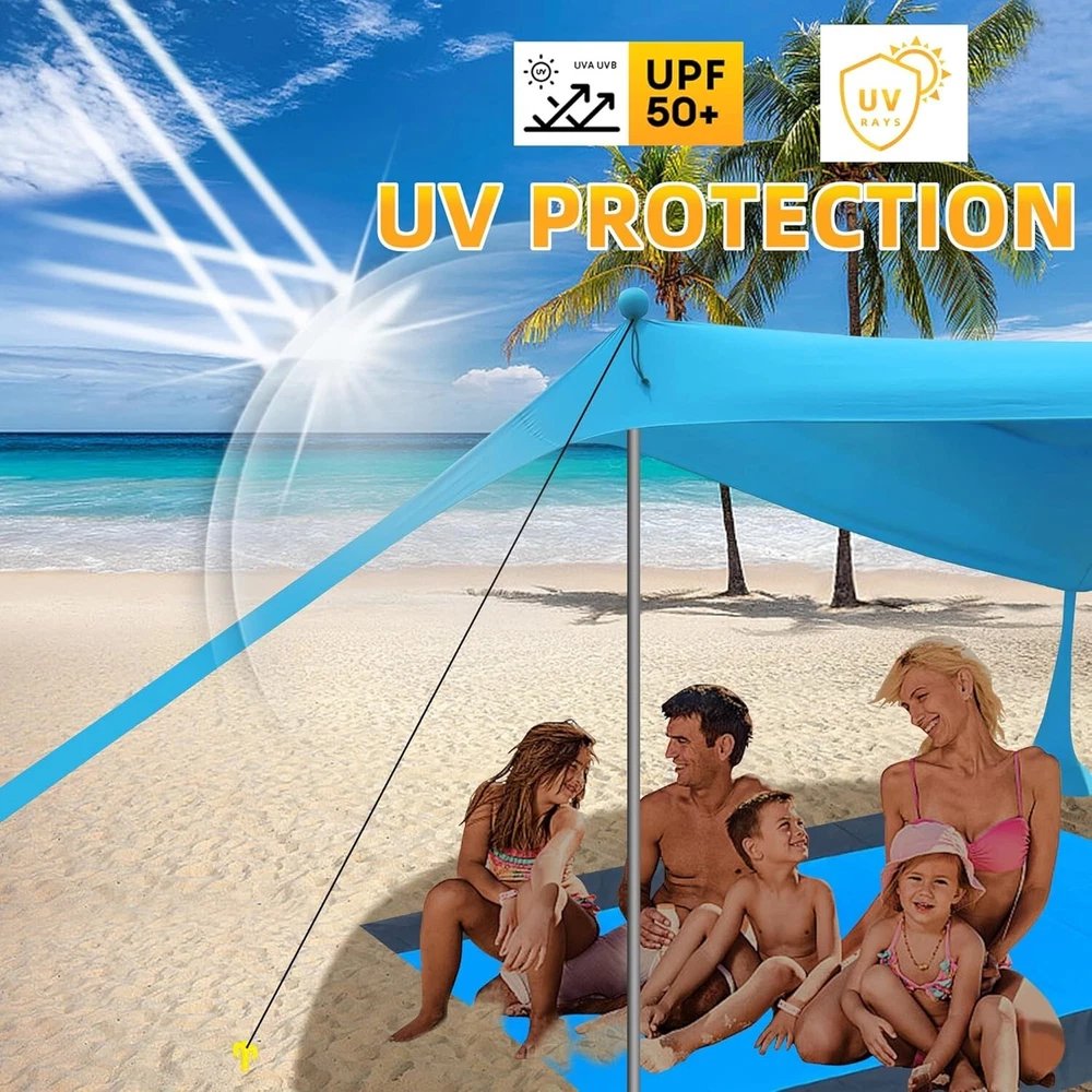 Turquoise Family Beach Tent - 10x10FT with UPF 50+ Sun Protection < class="slides"> ‹ › ‹ › ‹ › ‹ › ‹ › ‹ › ‹ › ‹ › ‹ › ‹ › Turquoise Family Beach Tent - 10x10FT with UPF 50+ Sun Protection Overview: Embrace the sun while keeping your loved ones sheltered with our breathtaking Turquoise Family Beach Tent. Measuring a generous 10x10 feet, this beach canopy tent ensures a luxurious space for families, couples, and friends, accommodating up to 6-8 people comfortably. Experience outdoor gatherings in elegance and style. Features: <> Spacious Design: Available in two sizes: Large (10x10 ft) and Medium (7x7.5 ft) for versatile outdoor experiences. Advanced Sun Protection: Crafted from Lycra fabric, providing UPF 50+ sun protection and water resistance for ultimate comfort on sunny days. Stable Windproof Performance: Enhanced wind resistance with fillable sandbags or stones, ensuring a secure setup even in breezy conditions. Versatile Use: Ideal for sandy beaches, grassy parks, gardens, backyards, picnics, field training, summer camps, or even as vehicle shading. Simple Setup: Quick and easy installation; even one person can set it up effortlessly, thanks to reinforced poles and elastic cords. Portable: Lightweight design comes with a travel carry bag for organized and convenient transport. Why Choose Our Turquoise Family Beach Tent? Transform your outdoor escapades with our stunning and functional beach tent that offers the perfect blend of style and protection. Whether you are on a family day out, a fun picnic with friends, or a serene retreat on the beach, our tent enhances your experience while safeguarding you from the sun's harsh rays. Its robust and weather-resistant materials guarantee durability, allowing you to enjoy countless adventures together. Let our Turquoise Family Beach Tent be your shade sanctuary on sunny days—order yours today and elevate your outdoor enjoyment with sophistication and peace of mind. Shipping <> <> Free & Fast Shipping - We offer free shipping to most of the USA with a normal delivery time of 3-7 days. However, due to the current situation, additional delivery time (up to 3 weeks) may be required for some items. Alternative Carriers - We may use alternative carriers (e.g. USPS, FedEx, UPS, etc.) to ensure your package arrives safely and on time. Due to the use of multiple carriers, we are unable to provide a tracking number automatically. Handling Time - Orders are processed and shipped within 1-2 business days of receiving cleared payment. Shipping Restrictions - Shipping to Alaska, Hawaii, Puerto Rico, Guam, and other US territories may incur shipping charges or delivery restrictions. Please contact us before ordering, or your order can be refunded/cancelled. State Restrictions - There may be restrictions based on your state of purchase. For example, certain items may not be shipped to California due to state regulations. Contact for Tracking Updates - If you require tracking updates or have any concerns about the delivery of your order, please feel free to contact us, and we will be happy to assist you. Return <> <> 30-Day Hassle-Free Returns - We want you to be completely satisfied with your purchase. If you are not, you can return the item within 30 days of receiving it for a full refund or exchange. Easy Return Process - To start a return, simply contact us and we will provide you with a prepaid return shipping label and detailed instructions. Restocking Fee - There are no restocking fees for returns. However, the buyer is responsible for return shipping costs if the return is not due to a seller's error. Refund Processing Time - Refunds will be processed within 5 business days of receiving the returned item in its condition. Payment We accept all major credit cards, PayPal, and Apple Pay for your convenience. Your payment information is secure and encrypted to ensure a safe and seamless transaction. Please complete your payment within 3 days of purchase to avoid any delays in shipping. Feedback Your feedback is extremely important to us. We strive to provide the best products and customer service possible. If you are satisfied with your purchase, please take a moment to leave us a positive review. If you have any concerns or issues with your order, please contact us before leaving negative feedback. We are committed to resolving any problems and ensuring your satisfaction. Contact Us If you have any questions or concerns, please feel free to out to our customer support team. You can contact us through the eBay messaging system. We are available Monday to Friday, 9:00 am to 5:00 pm EST, and we will do our best to respond to your inquiry within 24 hours. Buy it now and enjoy a pleasant shopping experience! Type: Beach Tent Shape: Rectangular Color: Blue Unit Type: ft