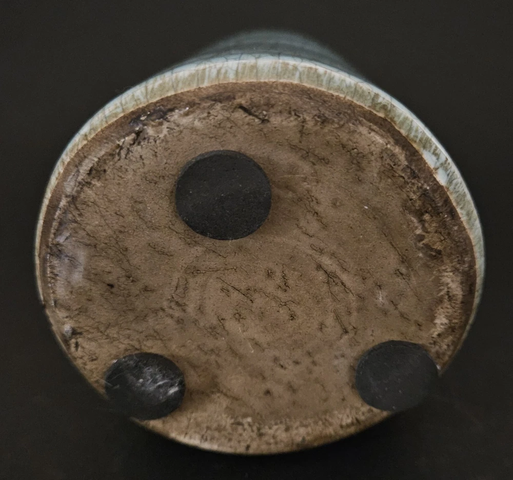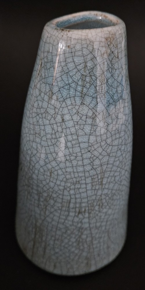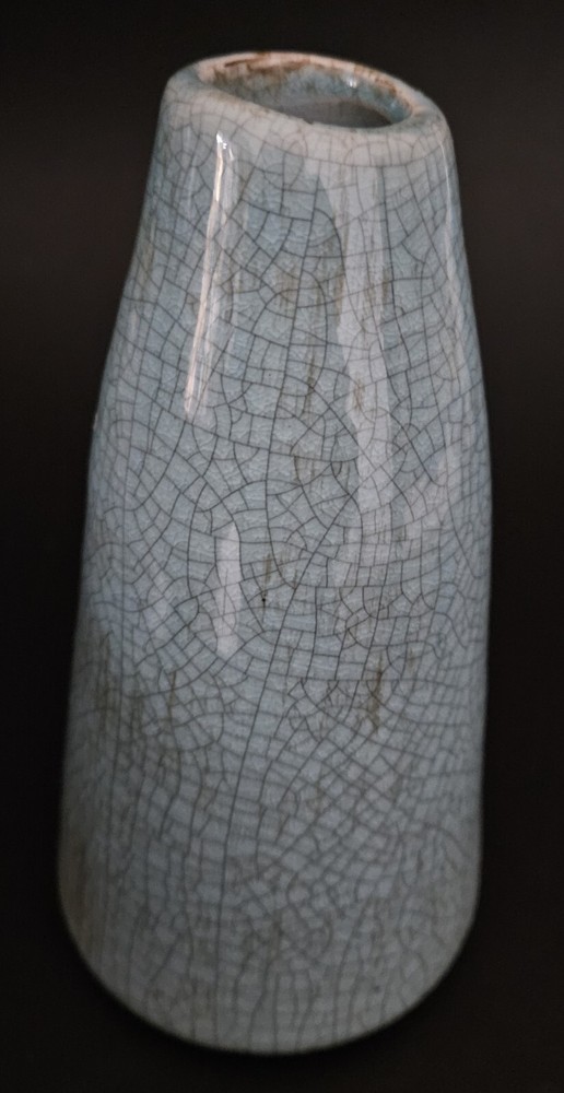 Glazed terracota turquoise cone shaoed vase. 6"T x 3"W at base. No chips, cracks or damage. Excellent condition.