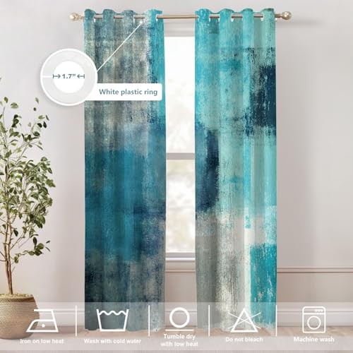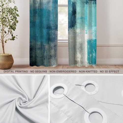 Absolutely love these curtains! The turquoise and green abstract pattern adds such a vibrant, modern touch to my living room. They block light perfectly and feel so soft. Installation was a breeze with the grommets, and they arrived super fast. Highly recommend!