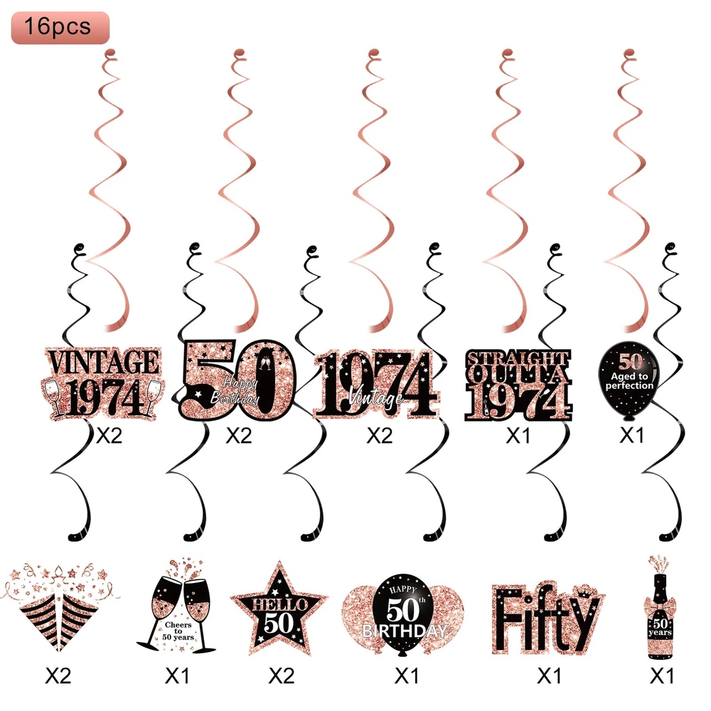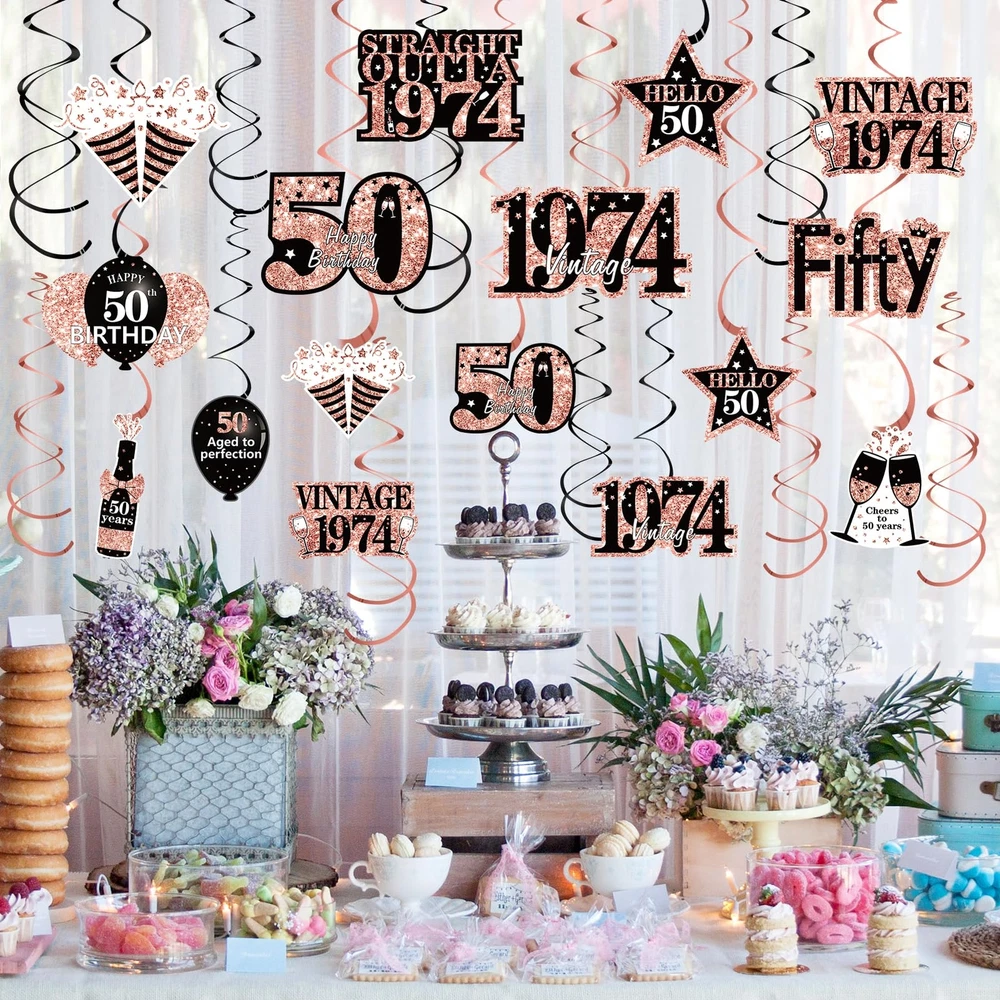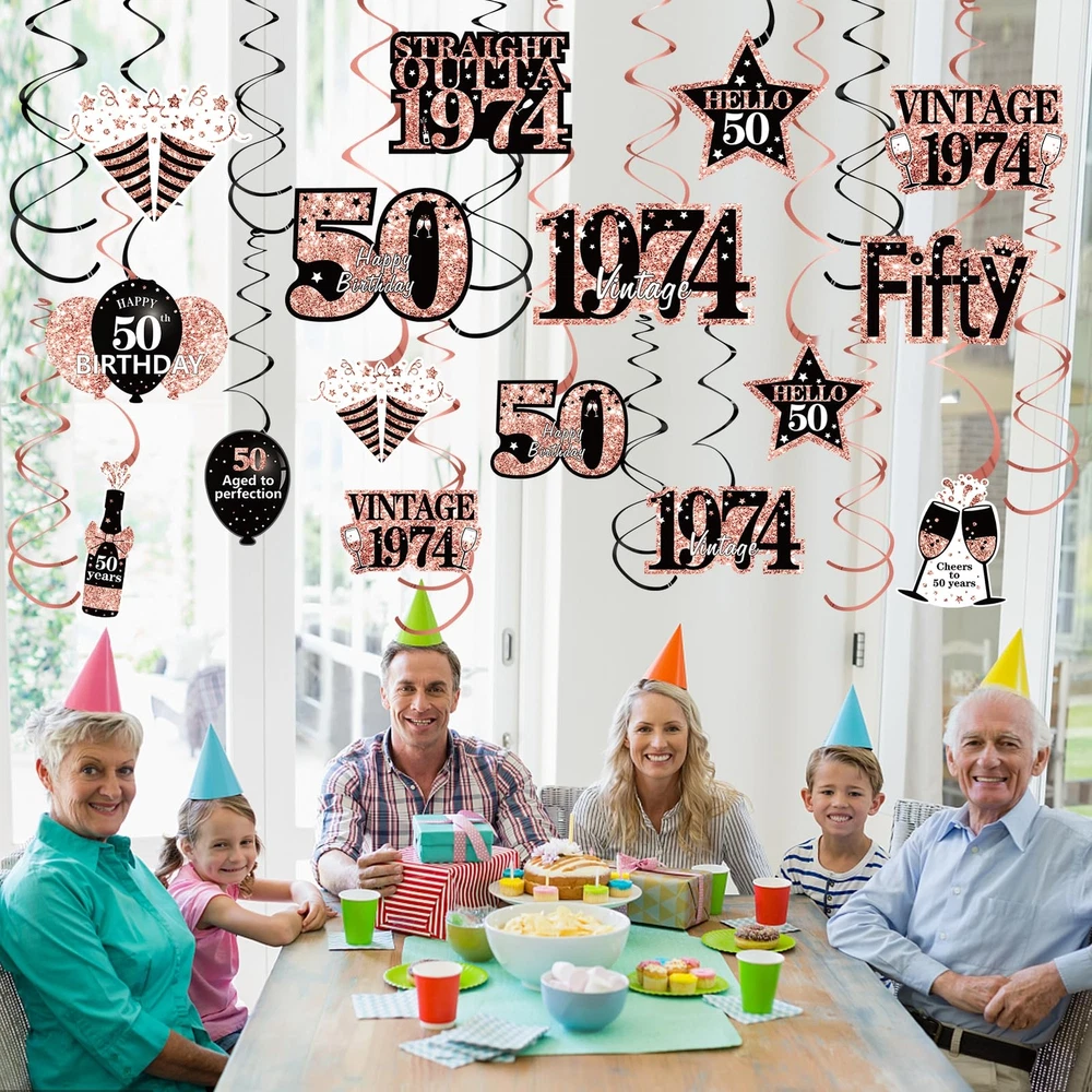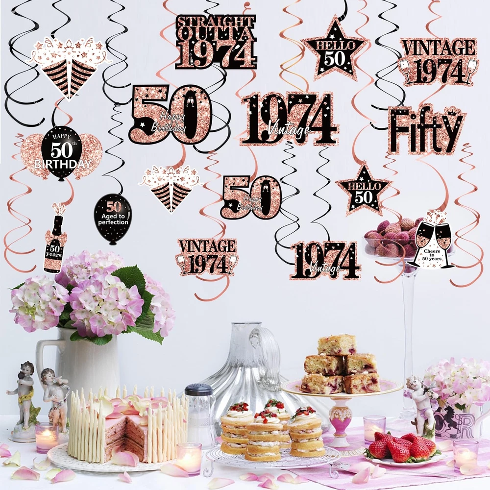 Turypaty 50th Birthday Decorations Hanging Swirls for Women, Rose Gold Vintage 1974 50th Birthday Foil Swirls Party Supplies, Fifty Year Old Birthday Ceiling Hanging Decorations 30Pcs Rose Gold 50th Birthday Hanging Swirl Decorations Material:High-quality PVC & Paper Color:Rose gold Occasions: Perfect for decorating 50th birthday party. Multi-purpose: You can hang the swirls on the wall, ceiling, door, cake table, branch, etc. Package include: 16 x happy birthday party patterns swirl. 14 x rose gold swirls. How to use swirl:The swirls is pre assembled with plastic hooks, which can be decorated by gently pulling the swirls apart. [Package Includes] - A set of 50th birthday hanging swirls decorations, comprising 16 pcs birthday-themed patterned cardboard and 16 pcs pink rose gold swirl decorations. [Diverse Party Elements] - The 50th birthday decorations hanging swirls predominantly feature a rose gold design, creating a charming pink ambiance. The vortex pattern showcases numbers like "50," "Vintage 1974," "Straight Outta 1974," "Fifty," and "Made in 1974." [Usage Scenario] - Ideal for decorating a 50th birthday party, these swirls can be hung on the wall, ceiling, door, cake table, branches, etc. They also serve as a great background and props for taking pictures. [Easy Assembly] - Simply use the provided plastic hooks to connect the swirls and patterned cardstock in a series. Then, gently pull the swirls apart and hang them wherever you'd like to decorate. [Well made Material] - Crafted from sturdy cardboard and foil, these swirl decorations boast longevity. All patterns are printed on both side. Shipping from the USA All of our products are shipped from the USA, ensuring quick delivery to your destination. Payment We offer the following payment methods: PayPal, credit card, bank transfer, and eBay's secure payment system. Free Shipping & Free Returns Shipping within the USA is FREE. Additionally, any return is absolutely free for you. Risk-Free Purchase You have the option to return an item within 30 days without any justification. We cover the return shipping costs! Fast Shipping We ship immediately upon receipt of payment. Generally, the package is delivered within 2-3 days in the USA. If it takes longer, we will contact you. Quality and Costs Made in Europe, USA, China No customs fees or additional charges Total satisfaction guarantee Invoice with declared VAT available upon request in .pdf format Feedback Your feedback is very important to us. After you pay for your purchase, you will automatically receive positive feedback from us.