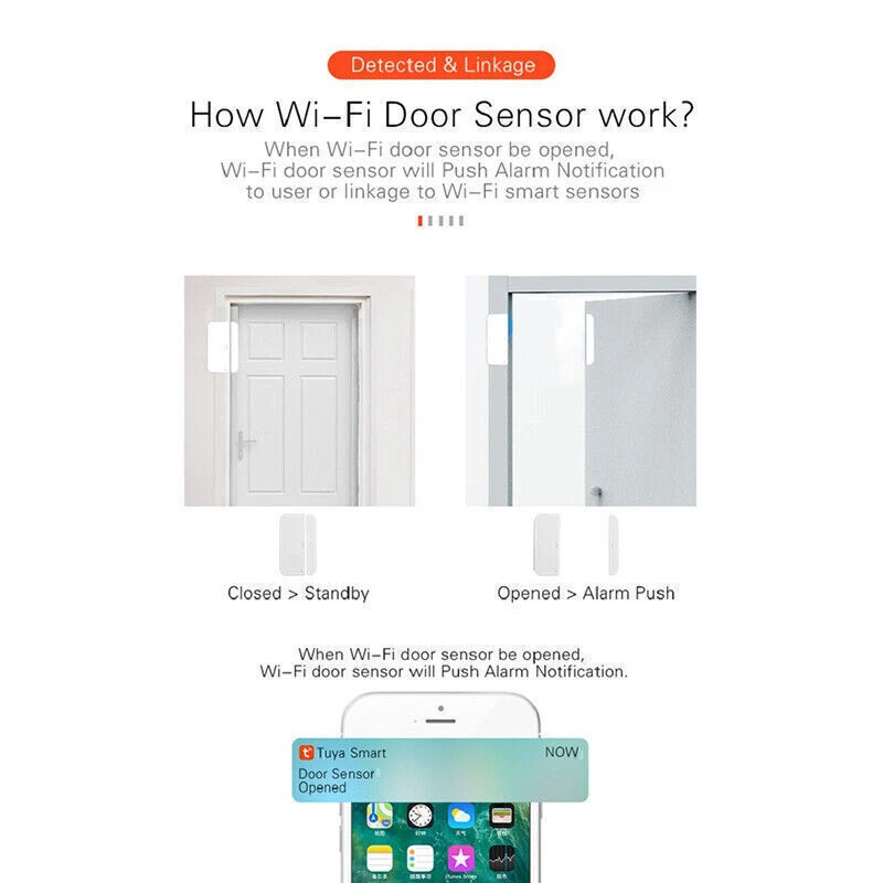 Tuya Smart WiFi Door Window Sensor Door Open/Closed Detector for Amazon Alexa