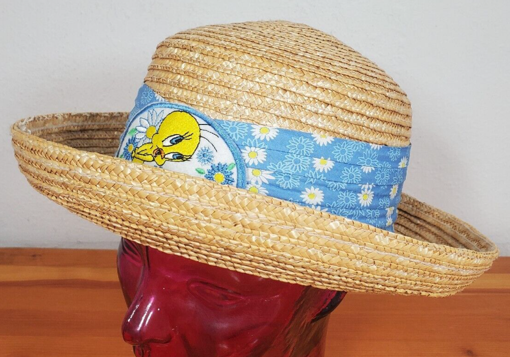 Officially Licensed Tweety Bird woman's Straw sun/gardening Hat Natural Fibers 55cm or 6 7/8. See pictures. Varied colors in straw strands can be seen. Hat appears to be in great condition. A few thread pulls can be found. Hi and welcome to my store. I always strive to offer the highest quality vintage, new, used or unique items I can find. Much of my inventory has been previously used. I always try to find the most gently used items I can find but this does mean that minor imperfections may be present. I will always try and put these imperfections in the item description. Please use the pictures as a guide to the item's condition. Be aware that due to camera limitations minor differences in color can occur. If you ever have any problems or issues with an item that you have purchased please do not hesitate to reach out to me so I can correct or address the situation. I always try and respond to or accommodate all questions about items I am selling. I will offer the fastest and safest shipping with care that I am able to. As a small reminder. I am a small one person business. I do my best to research all prices on the items I am selling. I always take condition into consideration when pricing. In most cases I welcome offers on merchandise. Please be considerate when sending offers. I have to compete with much larger organizations to stay in business. Thank you for your business and support. Have a great day I look forward to filling your order. Sincerely Coopadoopa