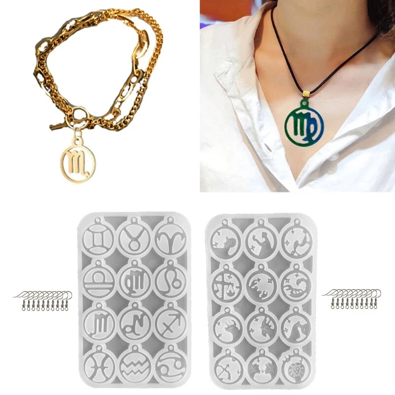 Twelve Constellations Epoxy Resin Mold Necklace Silicone DIY Mold and high Features: DIY mold silicone, eco-friendly, non-toxic, flexible, reusable and durable. Non-stick, easy to separate, temperature easy to eco-friendly, low carbon, can be recycled. Use: For necklace, earrings, jewelry pendants, DIY making, Easy to use: You only need to pour the resin into the silicone mold to make crafts.During the production process,You can also add sequins,small dried flowers,small ornaments and other decorative objects that you like,to make your own unique for you and your family DIY together. Unique Someone You Value: Give your gifts to your loved ones, friend on birthdays, Christmas, New Years, weddings, Warm Tips: 1. We only provide silicone mold. Please make your own! 2. After squeezing and deforming, you only need to rest for a while, and then the 3. After use, please wash with water, then dry, store it flat, and store in a cool place. 4. Please avoid heating and for sharp tools. Silicone Mold with Ear Hooks Set only,other accessories in the picture is not included. Specification: Silicone, Metal Optional Size: 01, 02 01 Size: app.9x14cm/3.5x5in 02 Size: app.8.7x13.5cm/3.4x5.4in Color: Transparent Optional 01, 02 Quantity: 1 Set Note No retail package. Please allow 0-1cm error due to manual measurement. pls make sure you do not mind before you bid. Due to the difference between different monitors, the picture may not reflect the actual color of the item. Thank you! Package Contents: 1 Set x Silicone Mold with Ear Hooks