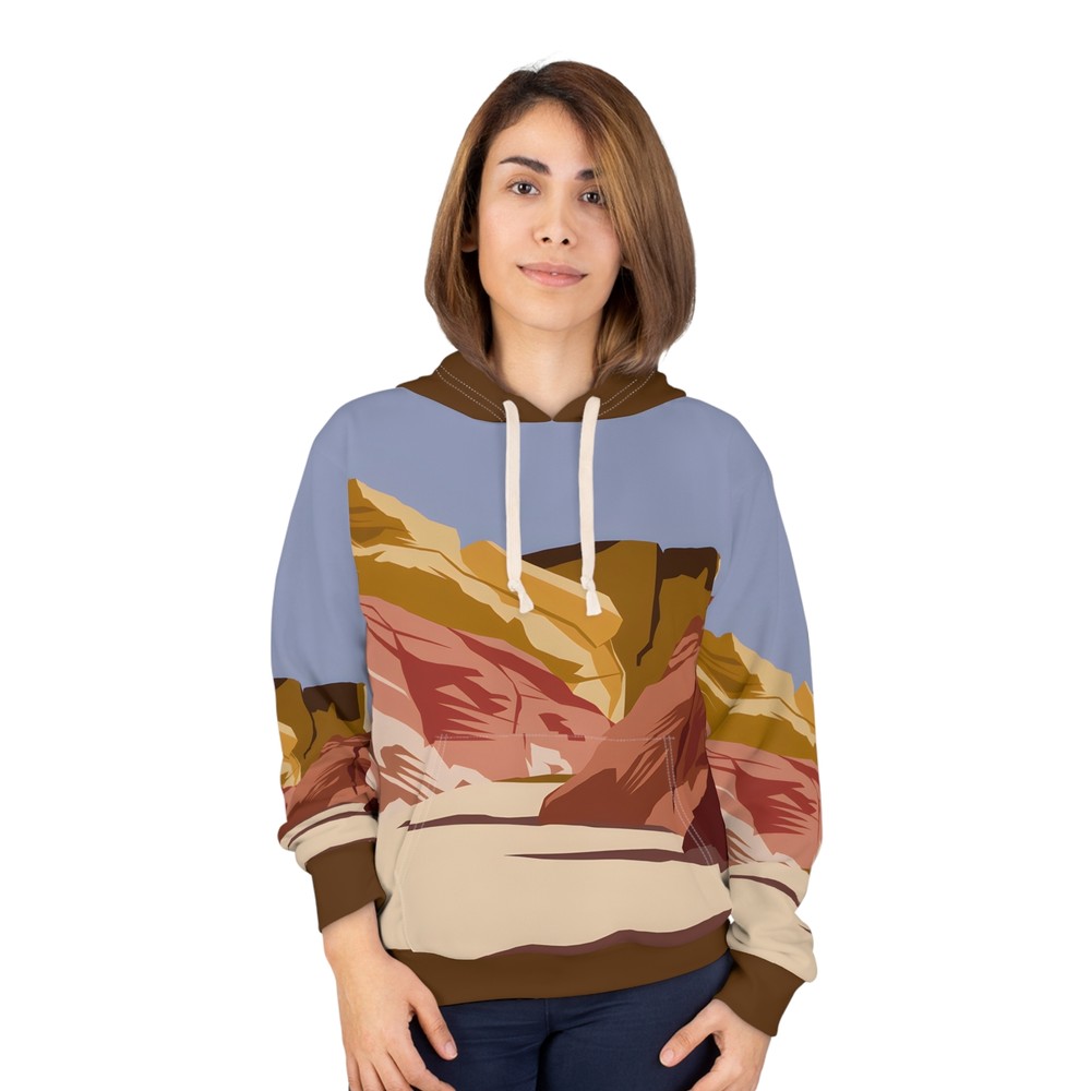 Elevate your outdoor adventures with the Twilight Canyon All Over Print Hoodie. This unisex pullover combines comfort and style, featuring a stunning canyon design that captures the beauty of nature. Made from soft, breathable fabric, it’s perfect for travel or cozy evenings by the fire. Embrace the journey in comfort! - Made of 100% durable polyester - Medium weight fabric with a classic fit - Tumble dry: low heat - Machine wash: cold (max 30C or 90F) XS S M L XL 2XL Length, in 25.00 26.61 27.64 29.25 30.24 31.89 Width, in 20.00 21.50 22.99 24.49 26.50 28.50 Sleeve Length, in 23.86 24.25 24.88 25.39 25.87 26.38