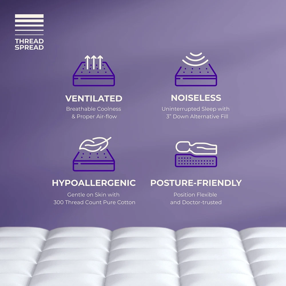 Mattress Topper For Optimum Thickness, Support, & Comfort: Whether your bed room mattress is too firm or you need pillow top softness, our 300 thread count 100% cotton twin matressess topper can help you. Neither too thick nor thin, our white matressess topper twin size alleviate pressure points i.e. neck & back pain when you sleep. The baffle box construction keeps feathers from shifting around. It’s soft, fluffy, and plush—making you feel that you’re sleeping on a five-star hotel bed. Temperature Smart + Adds A Layer Of Protection: Our twin topper disperses body heat and maintains an optimal temperature. It keeps you cool and super breathable, unlike memory foam, gel, and deluxe mattress pads. Great for hot sleepers who suffer from night sweats. It’s also a great mattress protector and repels water, stains, and spills. The liquid doesn’t seep through and keeps the mattress fresh and brand new. Extra Deep Pockets & Snug Elastic For A Perfect Fit: The top layer of our matress cover is made from soft-quilted, high-quality 100% cotton, and the bottom layer has a down-alternative filling for cushion padding. Made with extra deep pockets and all-around elastic, our twin pad topper stretches wide and far for a perfect fit. The bed topper twin measures 39” W x 75” L + 18” deep pocket and can hold up to 8-21 inches matressess easily. Home Care & Wash – Retains Shape Even After 100+ Washes: Other mattress pads become deformed or lumpy after a couple of washes. Our luxury pillowtop twin firm mattress topper retains its shape and bounce even after 100+ washes. It’s machine washable and maintains the fill consistency. Take it out from the vacuum box, place it open for a few hours, let it fluff up to shape, and then use it. Pro tip: Use fitted sheets on the mattress topper to prolong the life of the pad. 60 Nights Free Trial; 5-Year Warranty: Our twin cooling mattress topper is made in a certified facility for defect-free, safe, and non-toxic products. Since our premium topper is made from 100% cotton, it’s natural, skin-friendly, and best for people with sensitive skin. We offer a 60-day free trial and 5-year warranty so that you can buy our bedding products on Amazon risk-free. If you have any other issues, you can always reach out to us, and we will resolve them immediately.