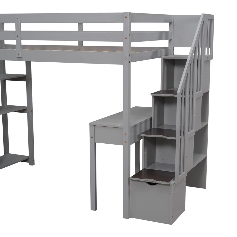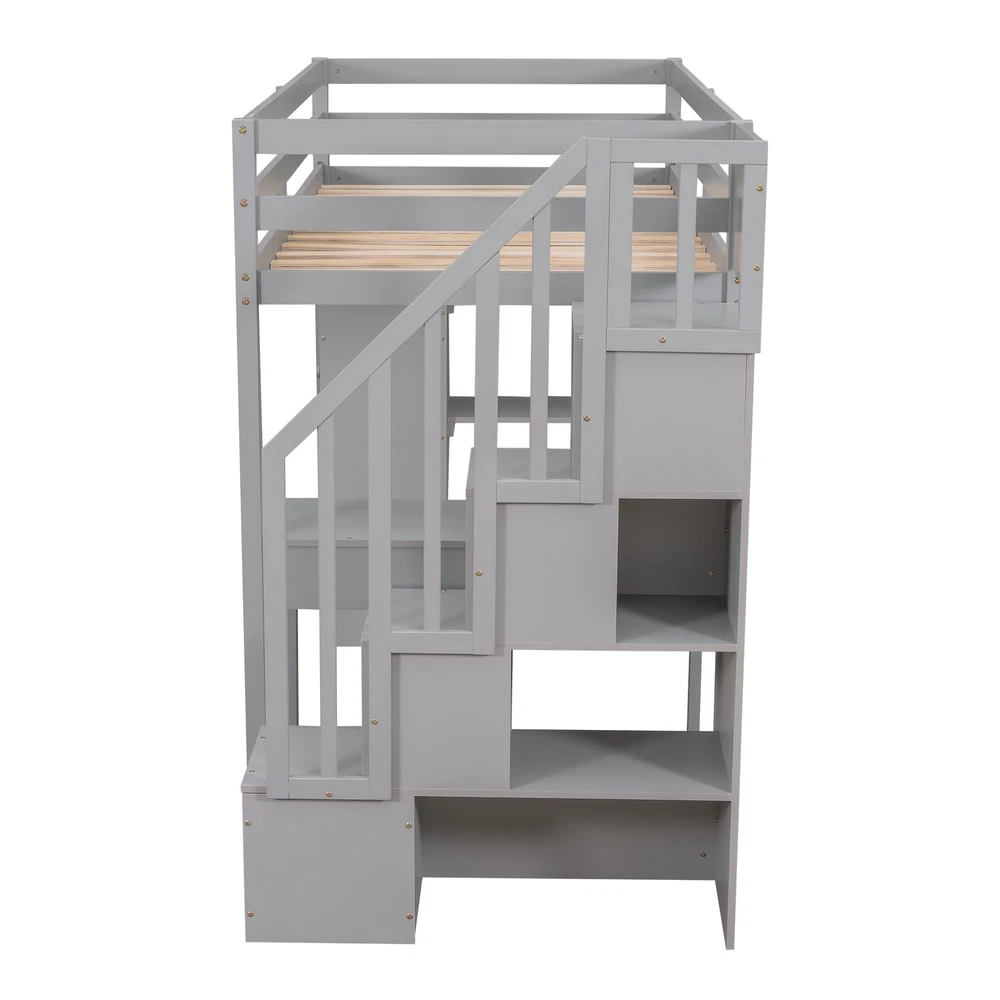 Brand Unbranded Type Bed frame UPC Does not apply Compatible Mattress Size Does not apply Color Gray Frame Material Solid Wood Twin size Loft Bed with Storage Drawers ,Desk and Stairs, Wooden Loft Bed with Shelves - Gray Twin size Loft Bed with Storage Drawers ,Desk and Stairs, Wooden Loft Bed with Shelves - Gray If your family needs a functional bed, then this loft bed will be a good choice for you, it will save you space and maximize functionality with multiple functions. This is the perfect study area while also having room to store your belongings. Beds with full rails ensure your sleep is safe. You don't have to worry about its quality. The bed has an elegant design that will fit nicely into your bedroom. Weight & Dimensions Overall Product Dimension 94.4"L x 41.8"W x 65"H Detail Product Dimension Please refer to the Size image Number of Package 3 Package Dimension Please refer to the Specification Overall Product Weight 248LBS Package Weight Please refer to the Specification Weight Capacity 300LBS Recommended Mattress Thickness 6" Recommended Age > 6 years old Specifications Product Type Loft Bed Size Twin Color Espresso/White/Gray Product material Plywood+MDF+Pinewood Number of slats 14 Level of Assembly Partial assembly Box Spring Required No Mattress Included No Estimated Time to Assemble 60 mins Suggested Number of People 2 Additional Tools Required All Tools Included Avoid power tools Yes Country of Origin Vietnam Notes Manual measurement has been used,there may be some reasonable error.Manual measurement has been used,there may be some reasonable error. v [Maximized space] It takes advantage of the floor space, and allows for a cozy rest, extra work and play space and makes a great piece of furniture for growing families.4 storage drawers, 1 desk as well as shelves, storage stairs, provide a lot of storage space v [Multifunctional bed] The space under the Twin loft bed is a great place for you to read, do homework or play, creating your own world of exploration. The storage space is strong, desk for study or work, and the stairs protect the safety of children. v [Solid Construction] This muti-functional loft bed is crafted from a solid pine wood frame, with commercial grade MDF board for quality control and durability. Guardrails are solidly attached for added safety. v [Health and Comfort] No box spring required, and without needing a foundation. The wood frame is sturdy and comes with slats for extra support and ensures air moves freely around your mattress to keep it fresh for years to come. v [Dimensions] : 94.4"L x 41.8"W x 65"H. Mattress not included. Some assembly is required, although we have provided clear instructions and tools. Item Specifics Brand Unbranded Type Bed frame Color Gray Frame Material Solid Wood Payment [ Policy: The above tab label style can be modified in left Basic - Footer Policy section. And this area is the details contents of your policies. You can add a banner for this policy as header and add text descriptions here. The text descriptions can be different Font Size, Font Color, Style and even graphics and icons are also accepted. ] Shipping [ Shipping: This is the contents of your Shipping. You can add a banner for this Shipping as header and add text descriptions here. The text descriptions can be different Font Size, Font Color, Style and even graphics and icons are also accepted. ] Returns [ Return: This is the contents of your Return. You can add a banner for this Return as header and add text descriptions here. The text descriptions can be different Font Size, Font Color, Style and even graphics and icons are also accepted. ] Contact Us [ Contact Us: This is the contents of your Contact Us. You can add a banner for this Contact Us as header and add text descriptions here. The text descriptions can be different Font Size, Font Color, Style and even graphics and icons are also accepted. ] DESCRIPTION PAYMENT SHIPPING RETURN POLICY CONTACT US Twin size Loft Bed with Storage Drawers ,Desk and Stairs, Wooden Loft Bed with Shelves - Gray Twin size Loft Bed with Storage Drawers ,Desk and Stairs, Wooden Loft Bed with Shelves - Gray If your family needs a functional bed, then this loft bed will be a good choice for you, it will save you space and maximize functionality with multiple functions. This is the perfect study area while also having room to store your belongings. Beds with full rails ensure your sleep is safe. You don't have to worry about its quality. The bed has an elegant design that will fit nicely into your bedroom. Weight & Dimensions Overall Product Dimension 94.4"L x 41.8"W x 65"H Detail Product Dimension Please refer to the Size image Number of Package 3 Package Dimension Please refer to the Specification Overall Product Weight 248LBS Package Weight Please refer to the Specification Weight Capacity 300LBS Recommended Mattress Thickness 6" Recommended Age > 6 years old Specifications Product Type Loft Bed Size Twin Color Espresso/White/Gray Product material Plywood+MDF+Pinewood Number of slats 14 Level of Assembly Partial assembly Box Spring Required No Mattress Included No Estimated Time to Assemble 60 mins Suggested Number of People 2 Additional Tools Required All Tools Included Avoid power tools Yes Country of Origin Vietnam Notes Manual measurement has been used,there may be some reasonable error.Manual measurement has been used,there may be some reasonable error. v [Maximized space] It takes advantage of the floor space, and allows for a cozy rest, extra work and play space and makes a great piece of furniture for growing families.4 storage drawers, 1 desk as well as shelves, storage stairs, provide a lot of storage space v [Multifunctional bed] The space under the Twin loft bed is a great place for you to read, do homework or play, creating your own world of exploration. The storage space is strong, desk for study or work, and the stairs protect the safety of children. v [Solid Construction] This muti-functional loft bed is 