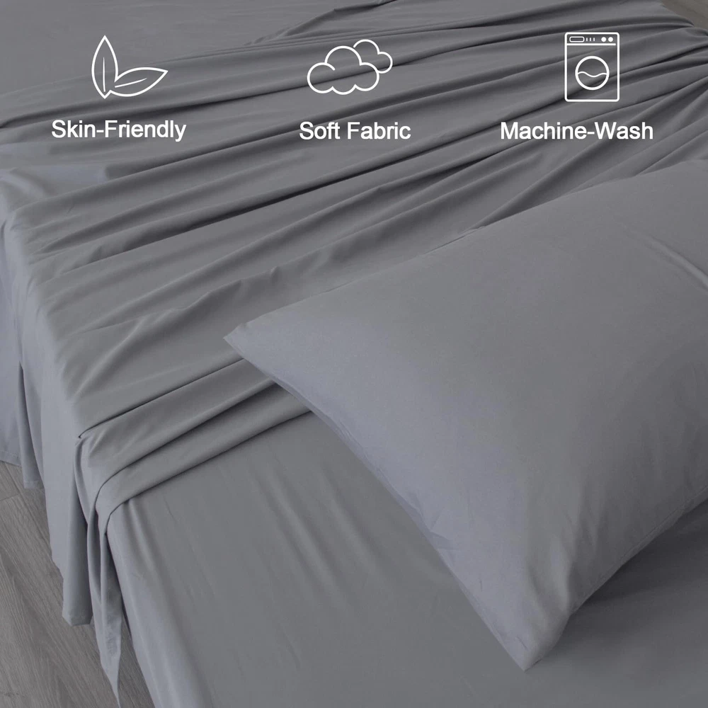 Twin Sheets Set, 4 Piece Bed Sheets Set Deep Pockets, Super Soft Twin Sheets, Breathable Twin Bed Sheets Set, Grey High Quality: The sheets set is made of high-quality microfiber, which is breathable, stretchy and silky soft. We will provide you a safe and comfy sleeping environment. 4 Piece Sleeper Sofa Queen Sheet Set Includes: 1 fitted sheet (38" X 75"), 1 Flat Sheet (66" x 96") and 2 Pillowcases (20" x 40"), Extra deep pockets grip and fit mattresses up to 15". 2 pillowcases give you convenience, while one is washed, the other comes in hand. All-around Elastic: We use high quality elastic band, which is elaborate and secure, making our sheets durable and long lasting. The All-around Elastic band to grip and fit the mattress better and to keep it in place all night long. Easy Care: We recommend you to wash the sheets set before using, which will be more soft and comfortable. The sheets set will not pilling, gentle wash to a max heat setting of 40℃/100℉, tumble dry low heat. Do not iron. Do not dry clean. Do not bleach. ’s Life-time Guarantee: Quality you can trust, if the sheet set does not meet your needs for any reason, replacement or money back, no questions asked!